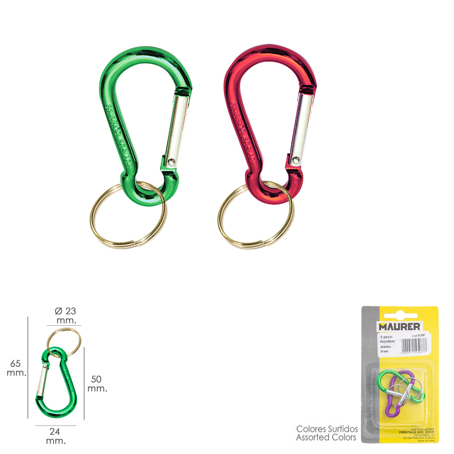 Mosqueton Bombero Aluminio Para llaves 50 mm. Blister 2 piezas