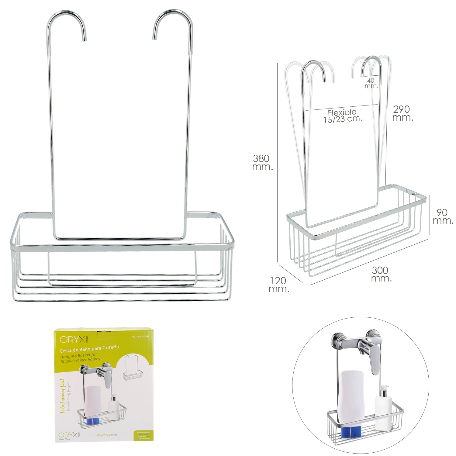 Oryx Cestillo De Baño para Colgar De Acero Cromado En Griferia, Gifros, Duchas, Bañeras, Color INOX 30x12x38 (Alt) Cm. Sin Aguje