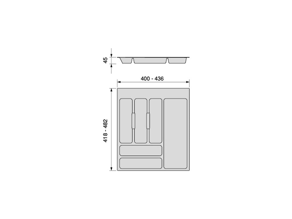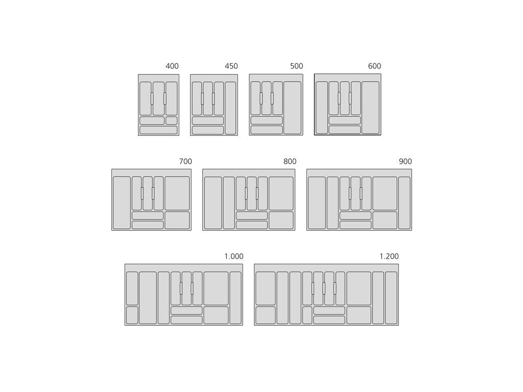 Outlet - x10 Cubertero Optima para cajón Universal, módulo 500mm, Plástico, Gris