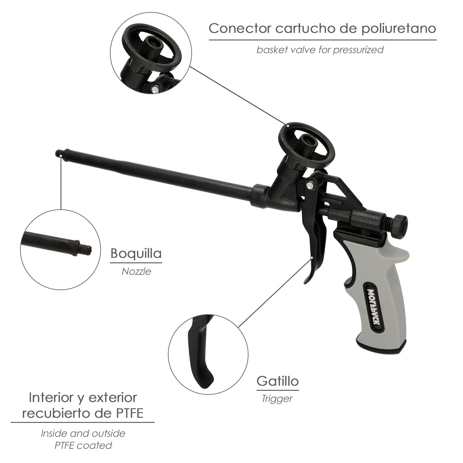 Pistola Para Espuma Poliuretano Recubriemiento Integro PTFE (Interior y Exterior) Pistola Calafatear, Rellenar, Sellar