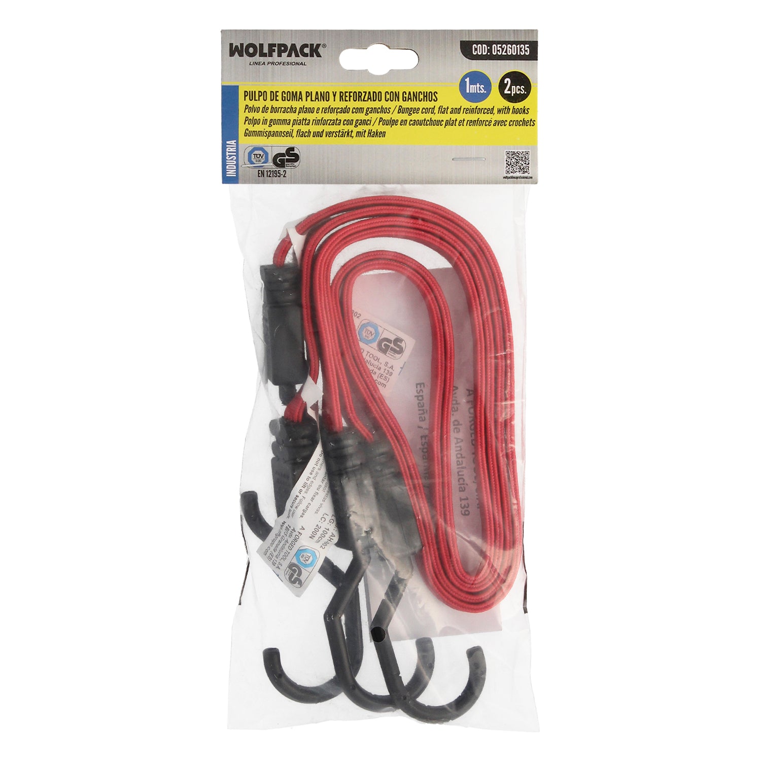 Pulpo De Goma Plano Reforzado 1,0 Metro (2 Unidades) 100% Latex, Capacidad Amarre 200 Newtons Gomas Elasticas, Cuerda Elastica,