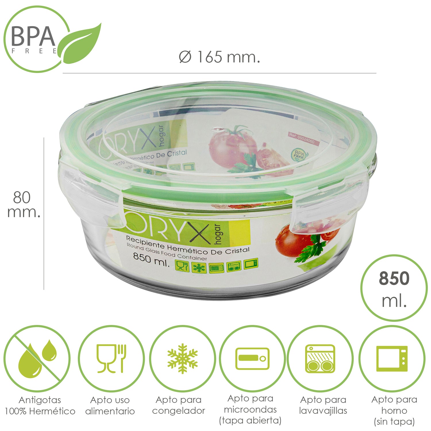 Recipiente Hermetico Cristal Redondo 850 ml. Ø 165 x 8 (alt) cm.