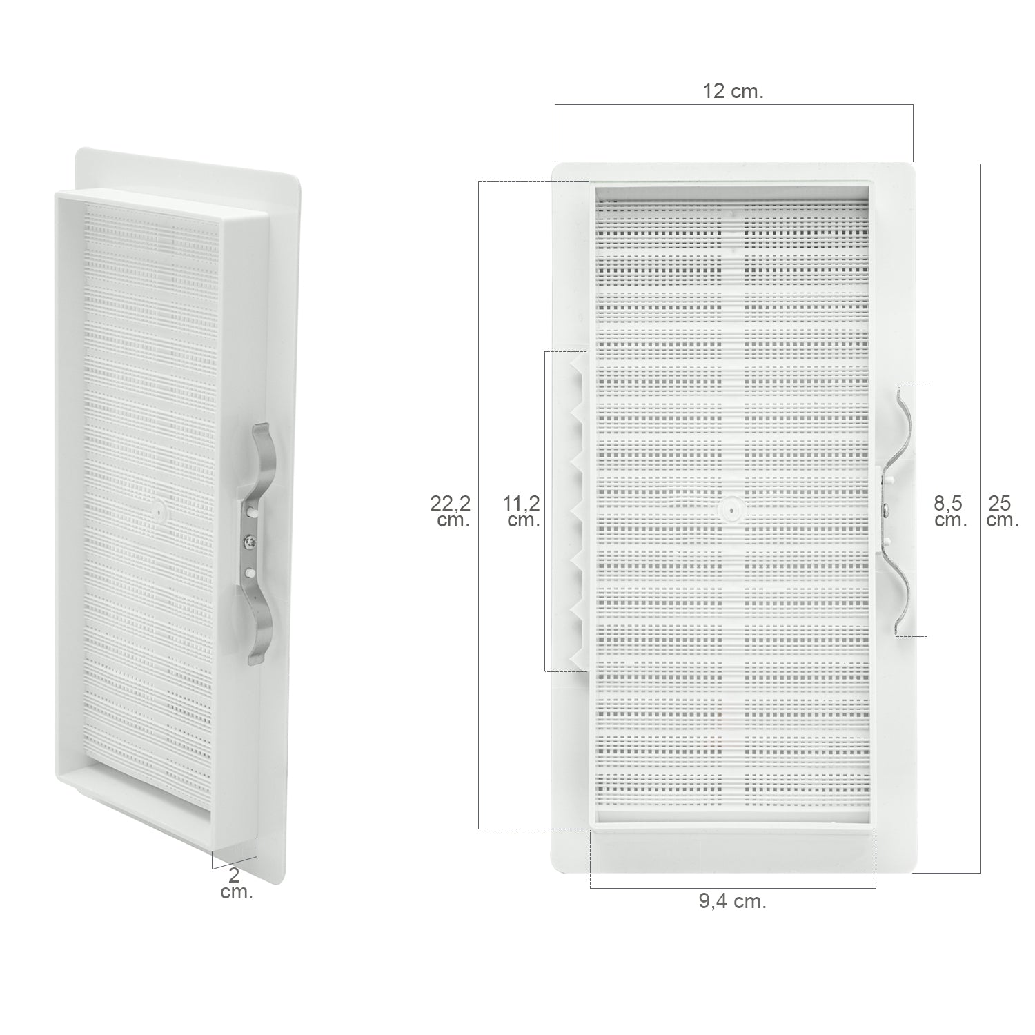 Rejilla Plastico Empotrar Con Malla Posterior 25x12 cm.