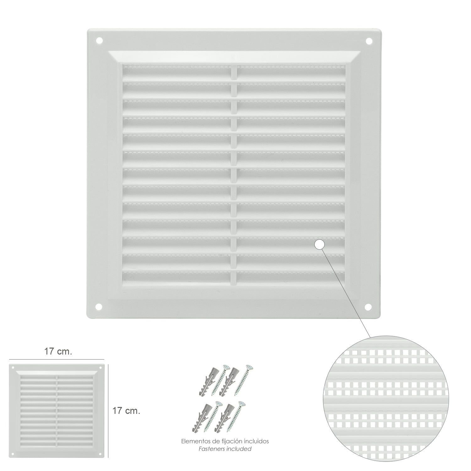 Rejilla Plastico Sobreponer Con Malla Posterior 17x17 cm.