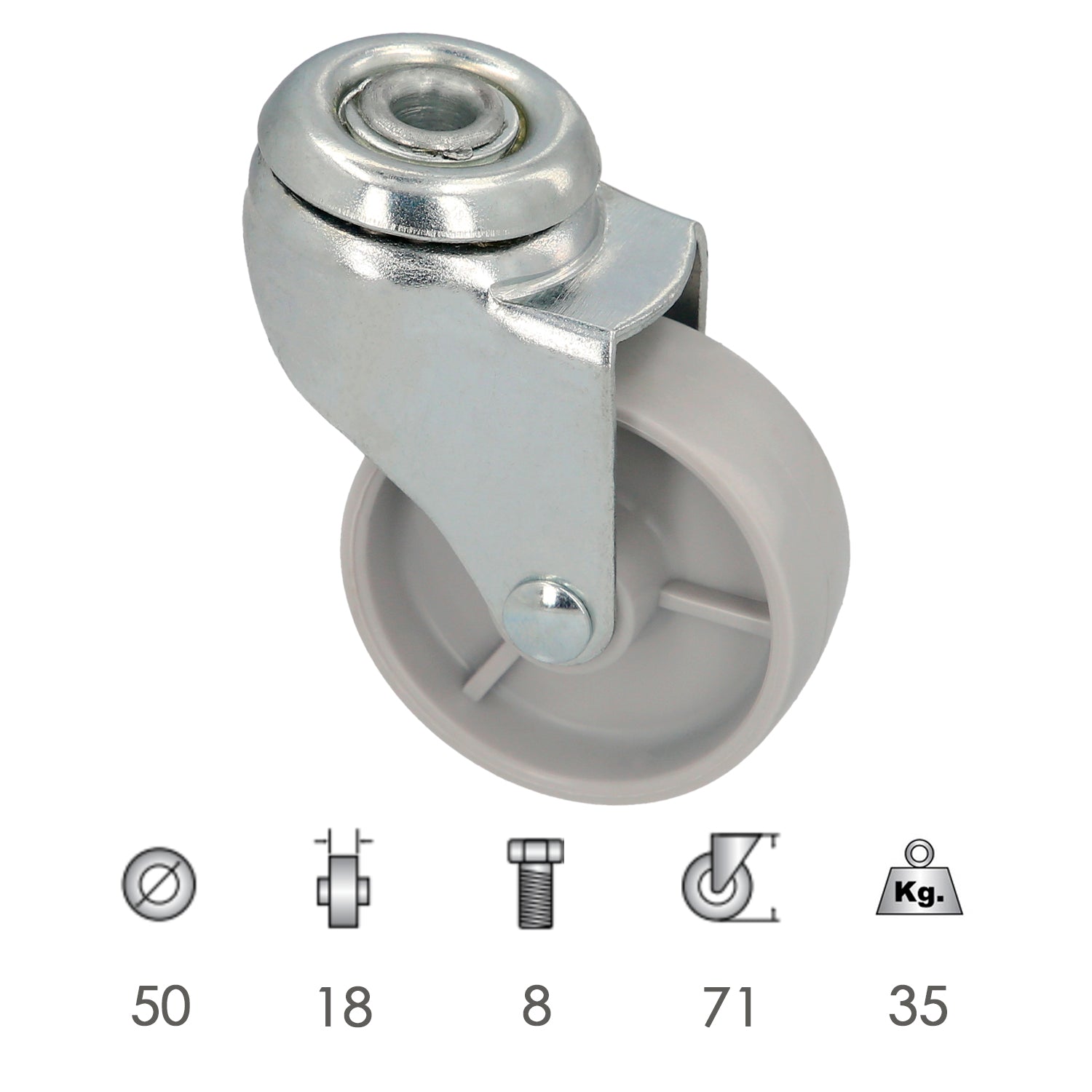 Rueda Domestica Ø 50 mm. Agujero Pasante Ø 8 mm.