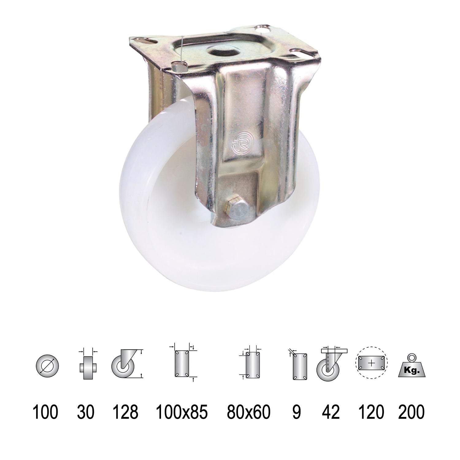Rueda Industrial Nylon Placa Fija 100 mm.
