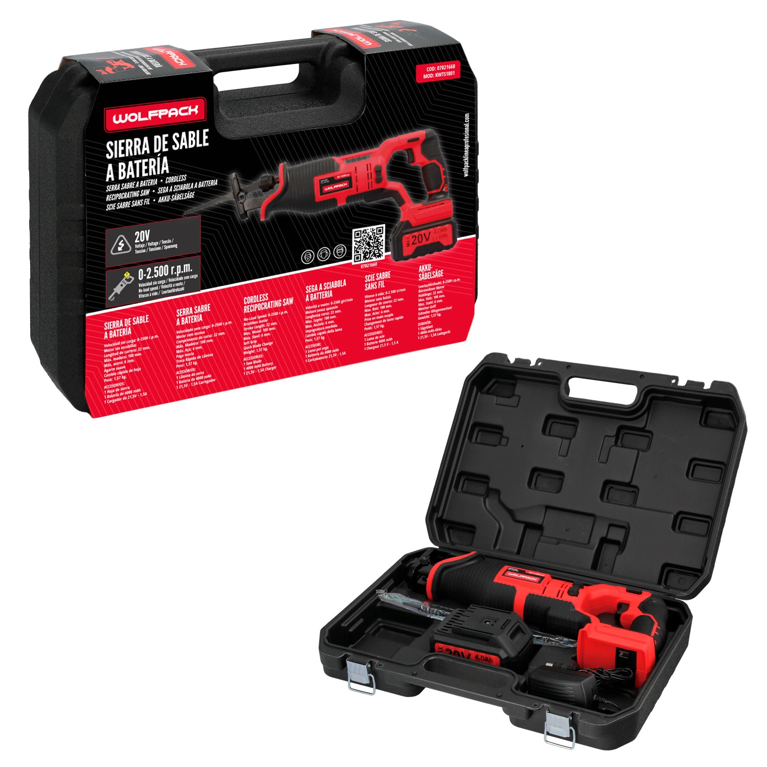 Sierra De Sable 20 V. Bateria 4 Ah. Cambio Rapido de Hoja. Madera 100 mm. / Acero 6 mm.