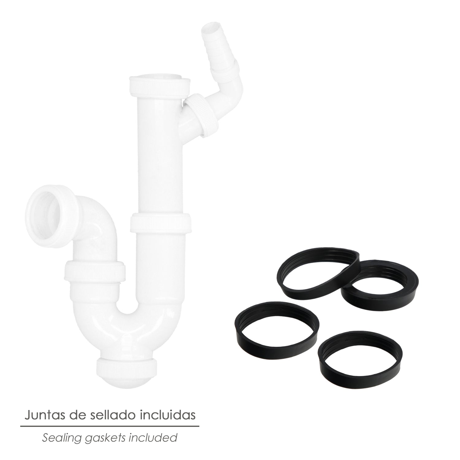 Sifon Curvo Extensible Con Toma Lavadora 1 1/2" Ø 40 Mm.