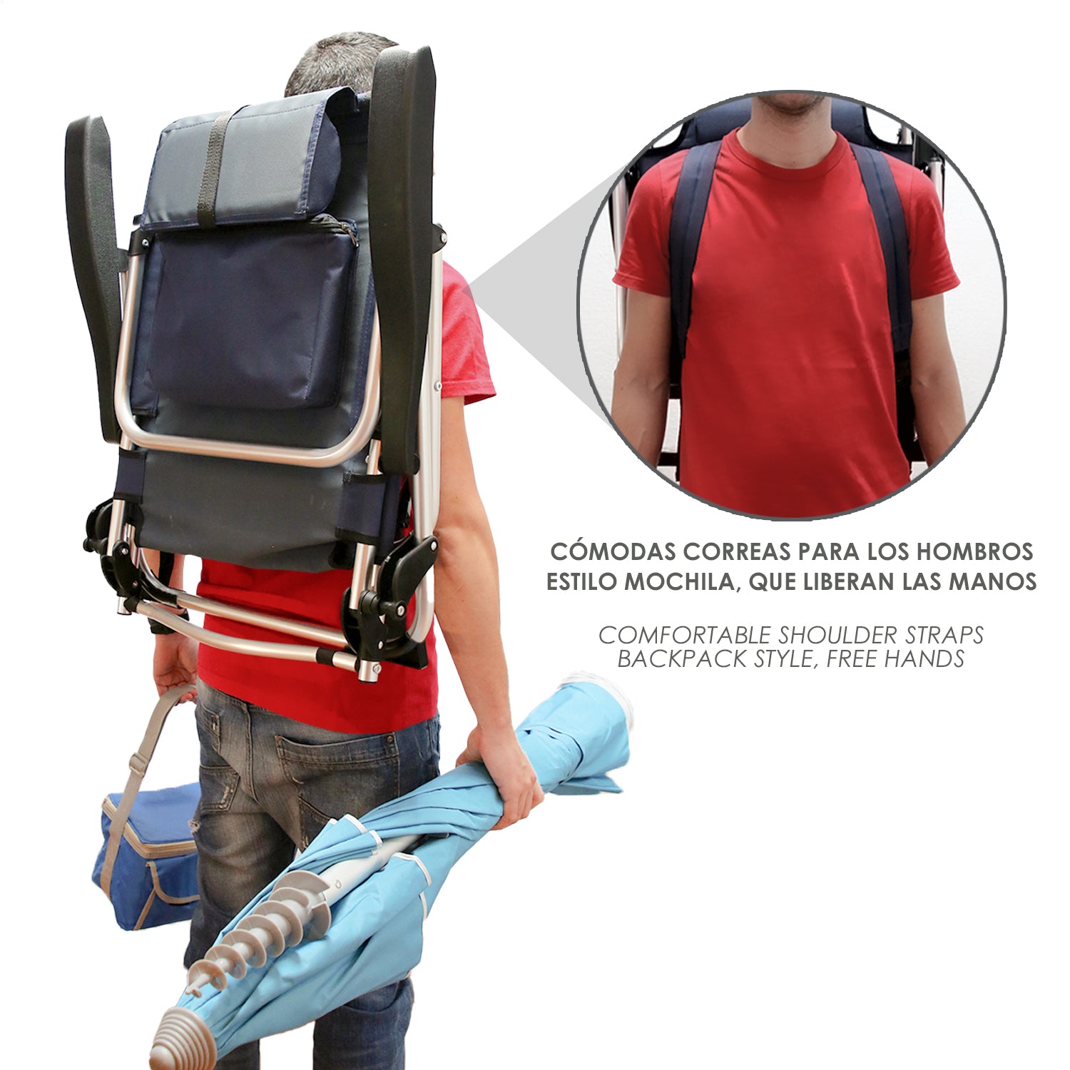 Silla Playa Tipo Mochila Con Bosillo Termico Muy Ligera Realizada En Nylon Alta Calidad y Aluminio