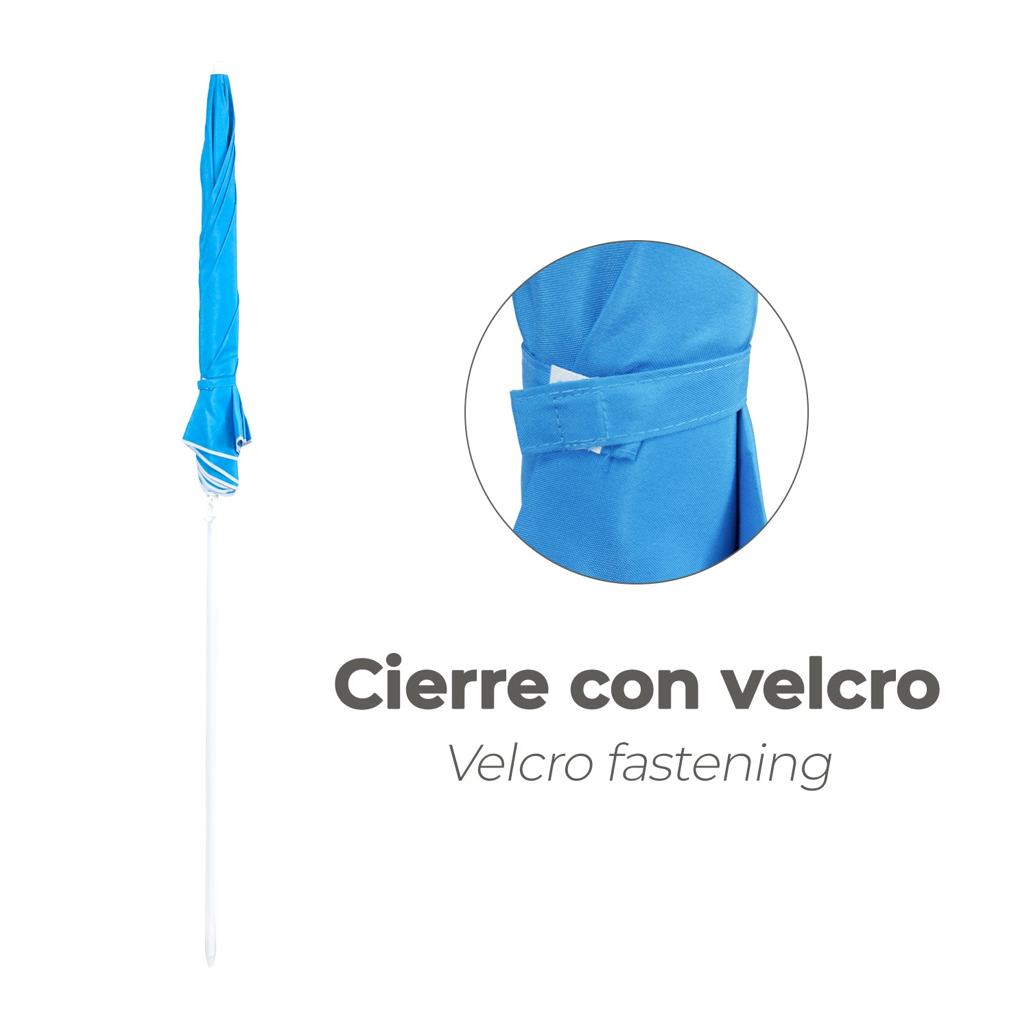 Sombrilla Playa Acero / Poliester Ø 180 cm. Azul. Varillas Fibra De Vidrio.
