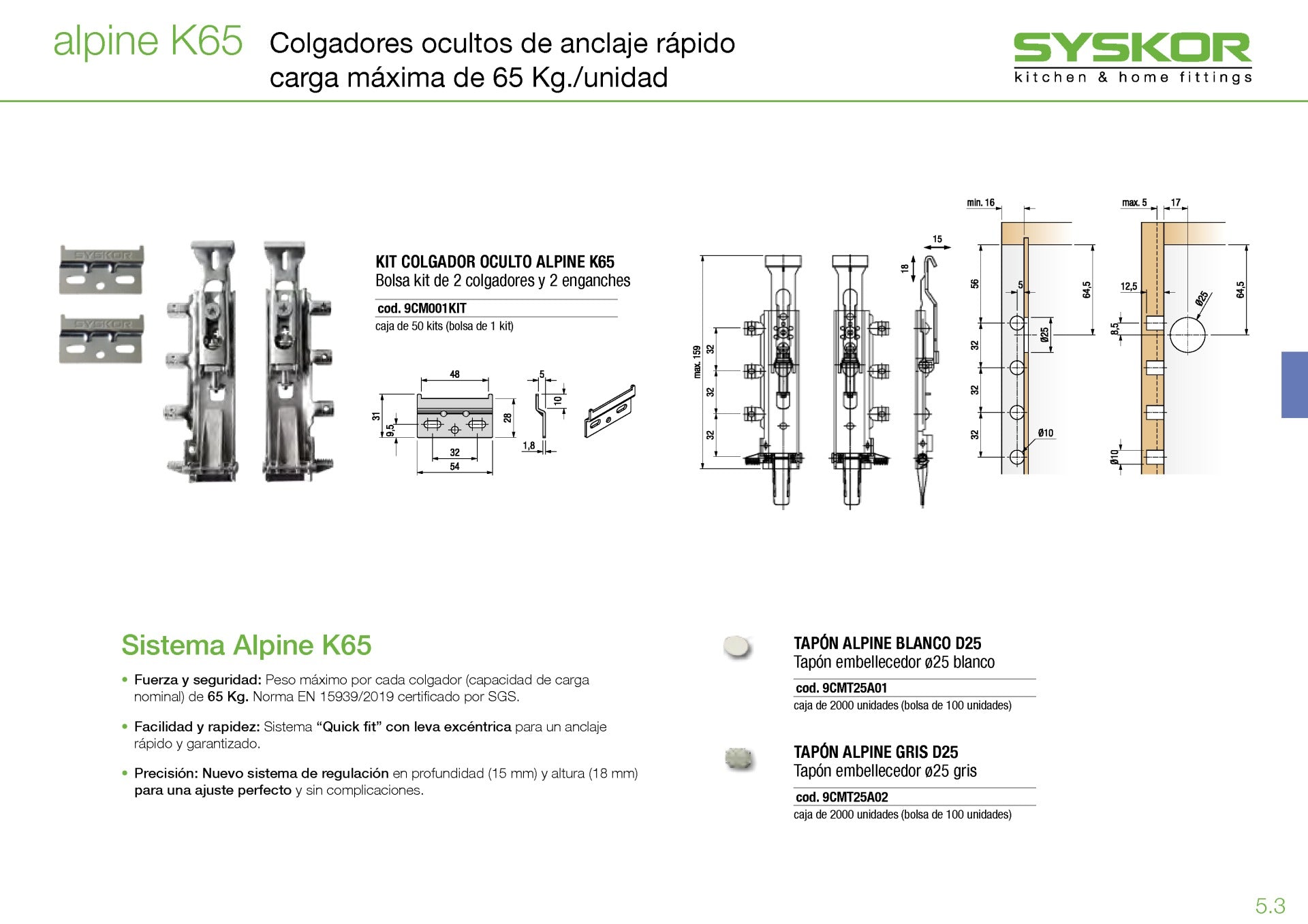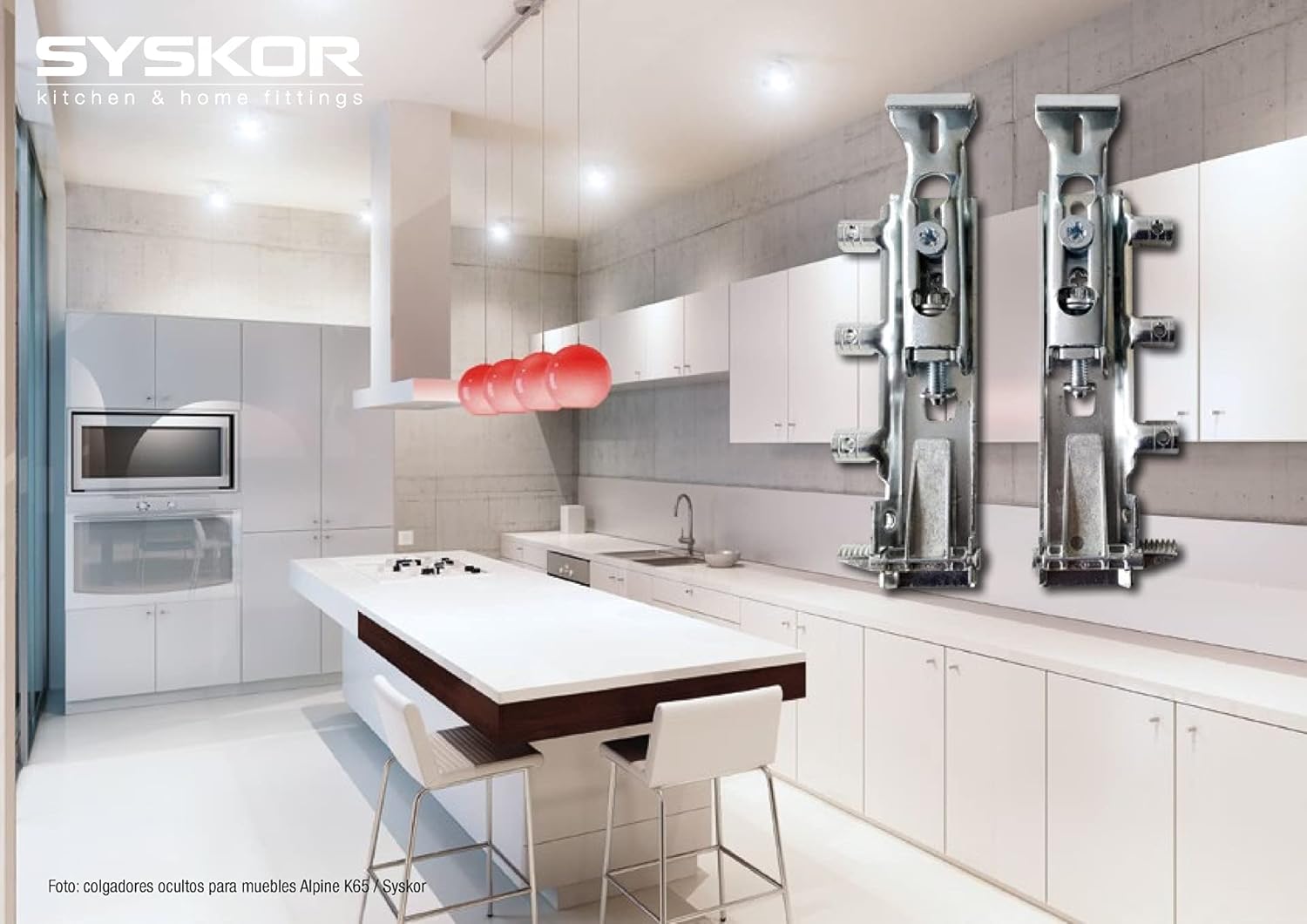 Syskor 2 Juegos Ajustable Cocina Colgador Oculto para Muebles Suspendidos Soporte para Colgar Armarios, la Carga: 65 Kg Placa + 2X Tapas Blancas