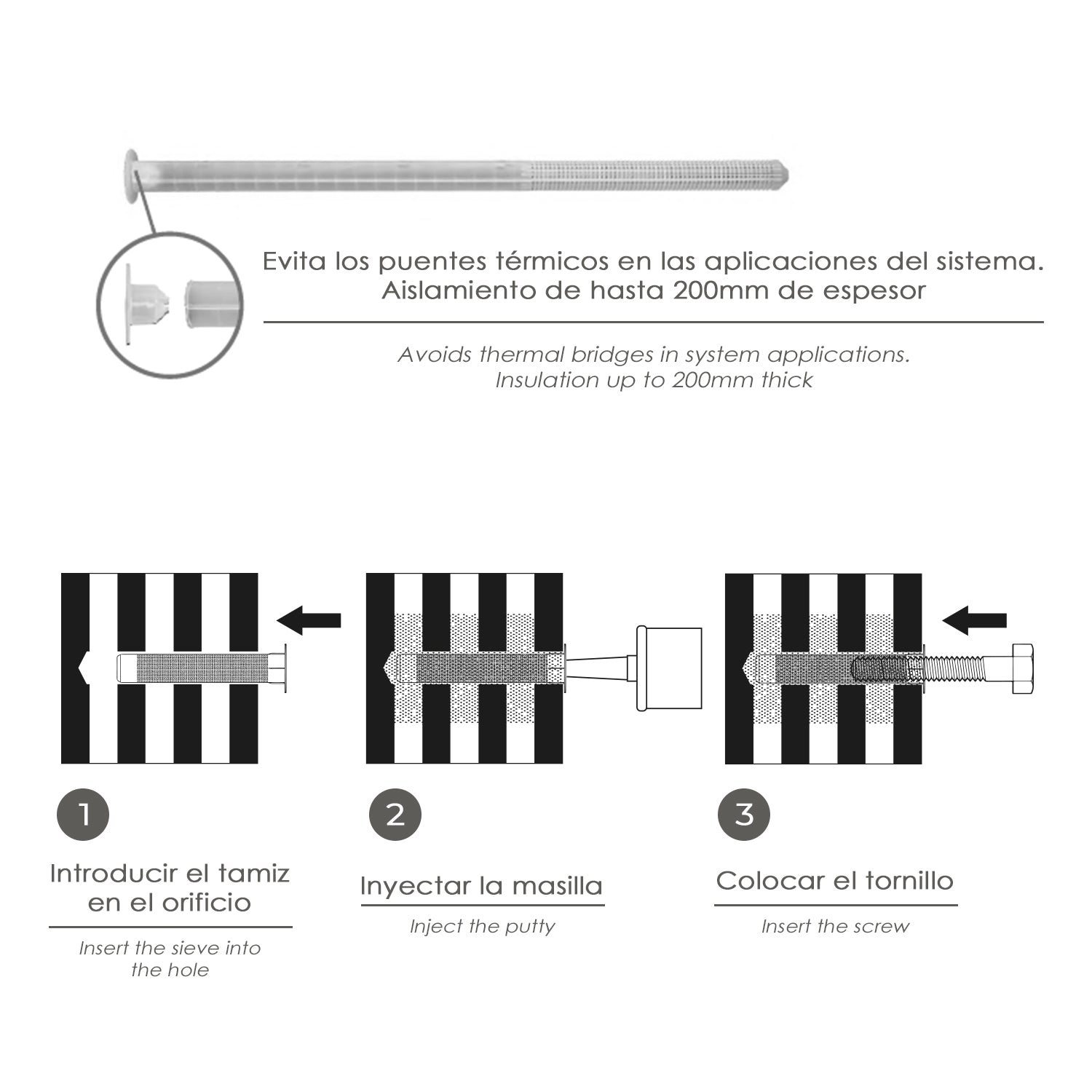 Tamiz Taco Quimico Largo Para Anclajes Quimicos Ø 16x330 mm. Seccionable (Bolsa 5 unidades)