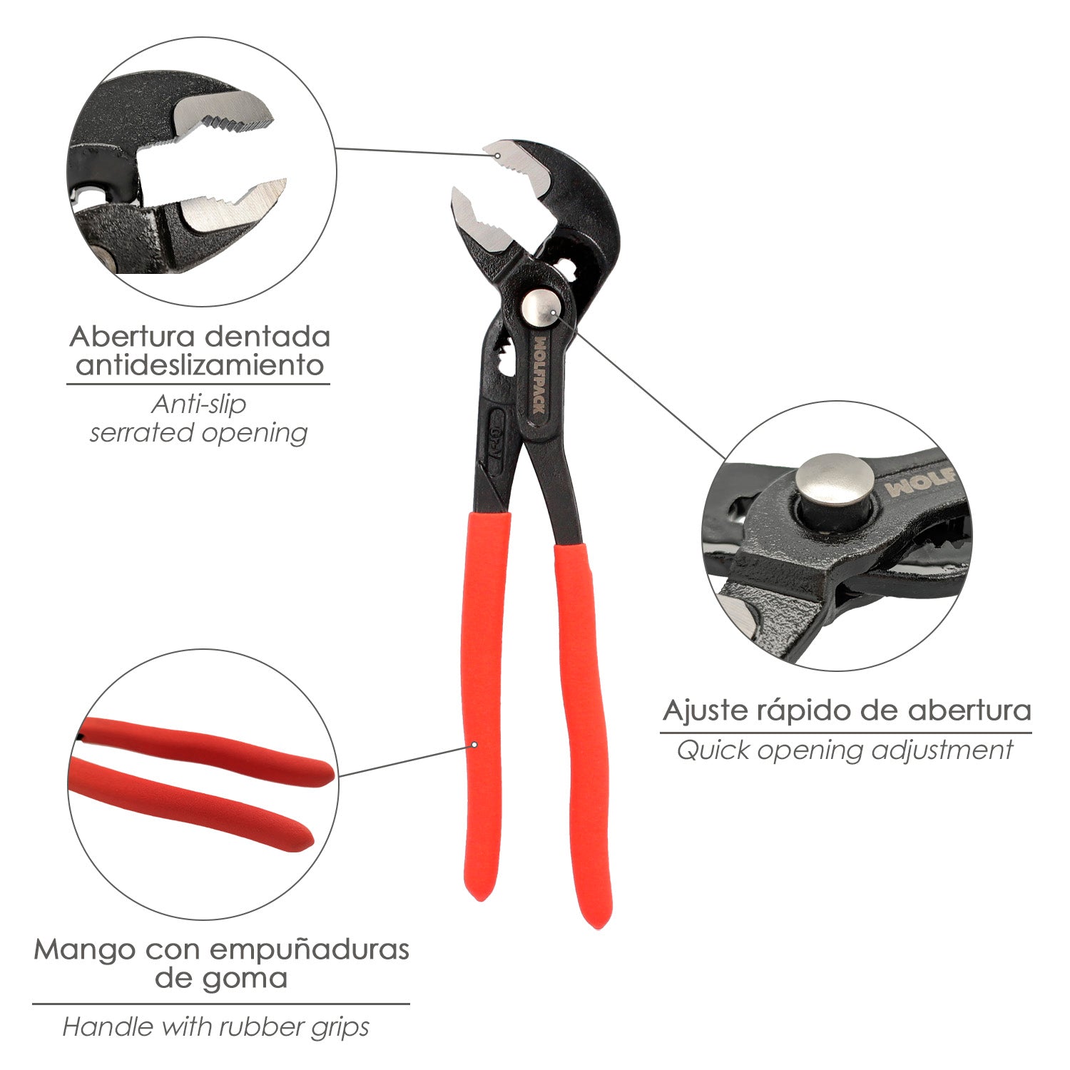 Tenazas Apertura Multiple Con Bloqueo 250 mm. Pico De Loro, Alicates Extensibles, Tenazas Fontanero