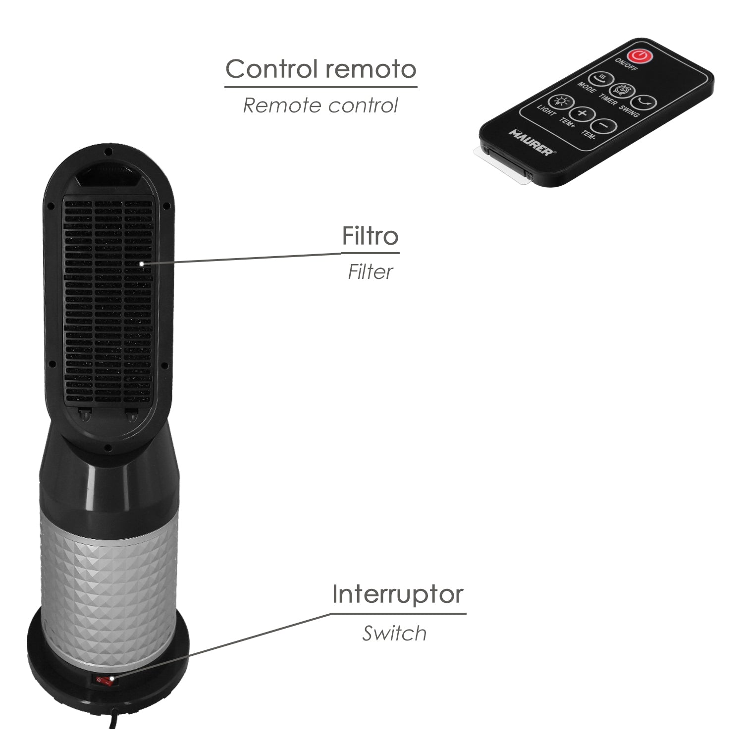 Termoventilador Ceramico Oscilante Con Mando 1.300 / 2.000 Watt. Temporizador 12 Horas.