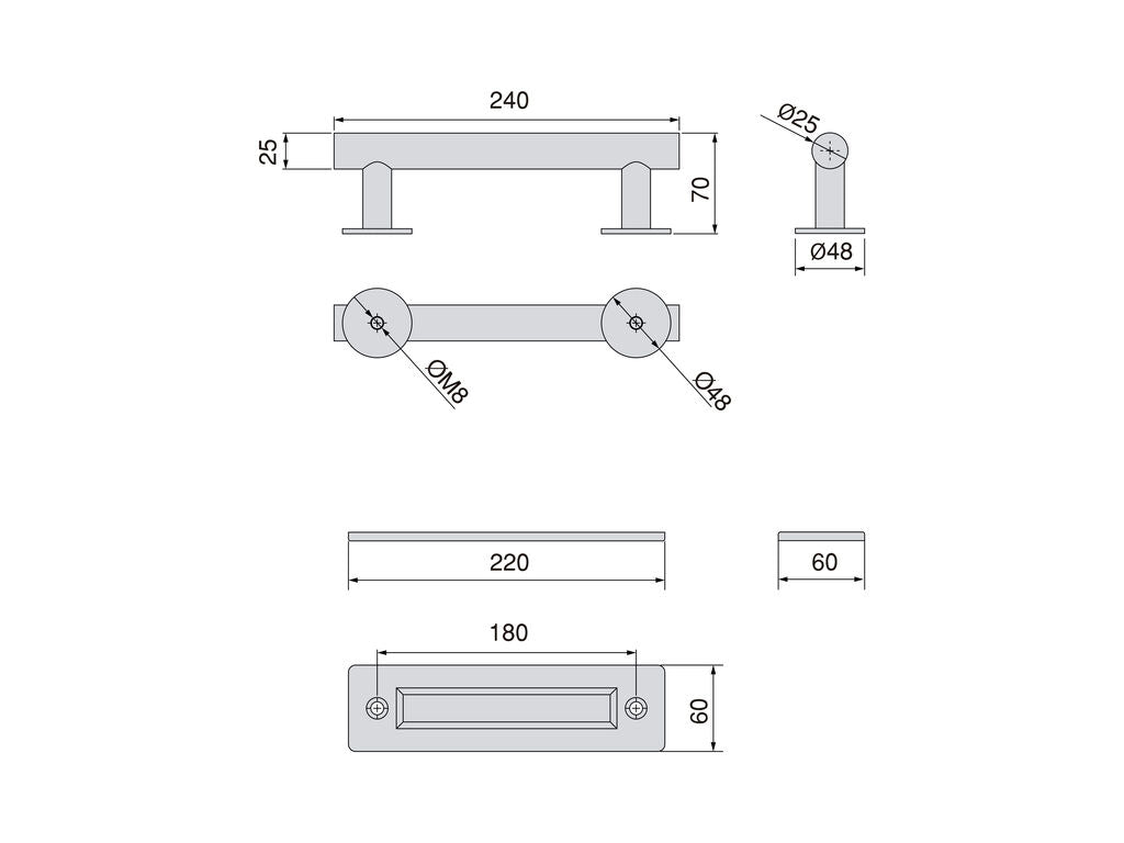 Tirador para puertas correderas colgadas de madera Pasadena, Longitud 240 mm, Intereje 180 mm, Acero, Negro