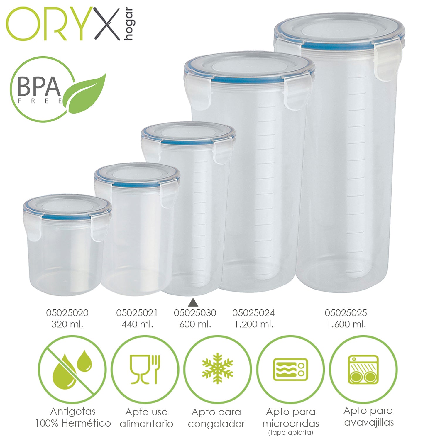 Vaso Recipiente Hermetico Medidor Plastico Redondo 600 ml. Ø 9x18.5 (Alt.) cm.
