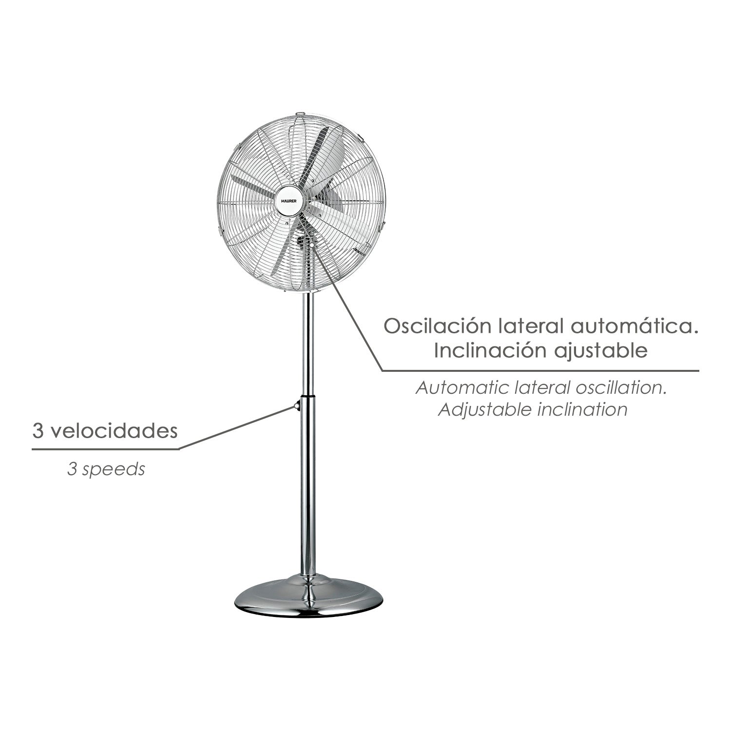Ventilador Pie Ø 44,5 cm. Altura 130 cm. 60 watt. Ventilador oscilante. Ventilador Pie silencioso. Circulador de aire.