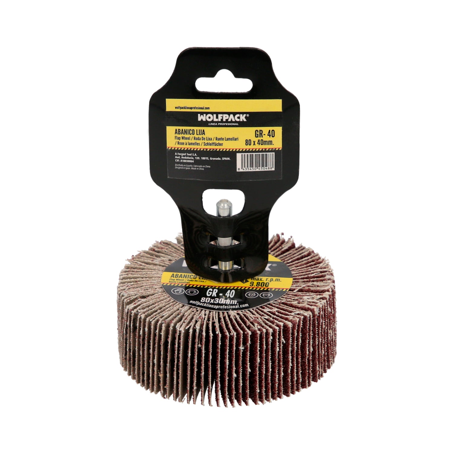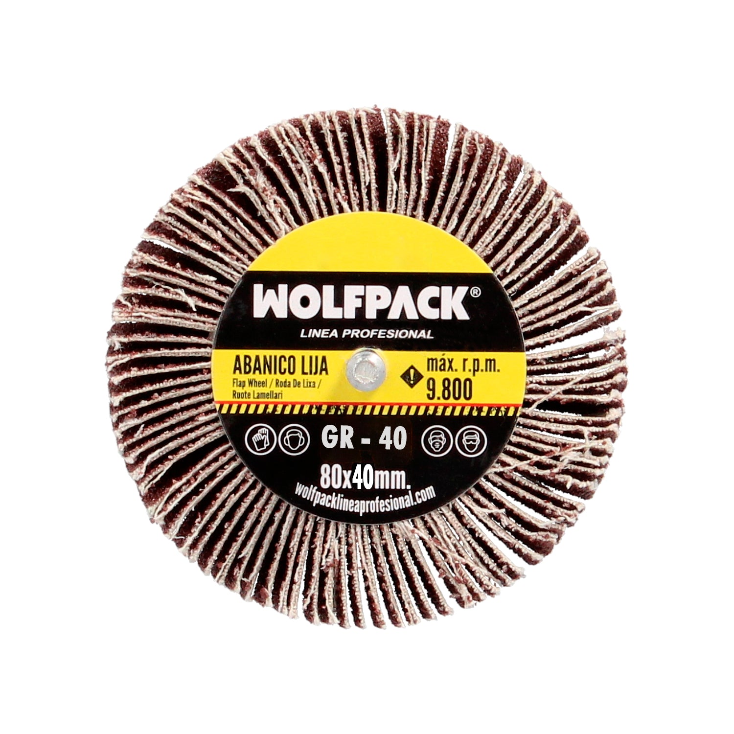 Lixa em leque, grão 40, Ø 80 x 40 mm. Disco abrasivo, rodas de lixa, rodas abrasivas, lixamento, esmerilhamento, polimento