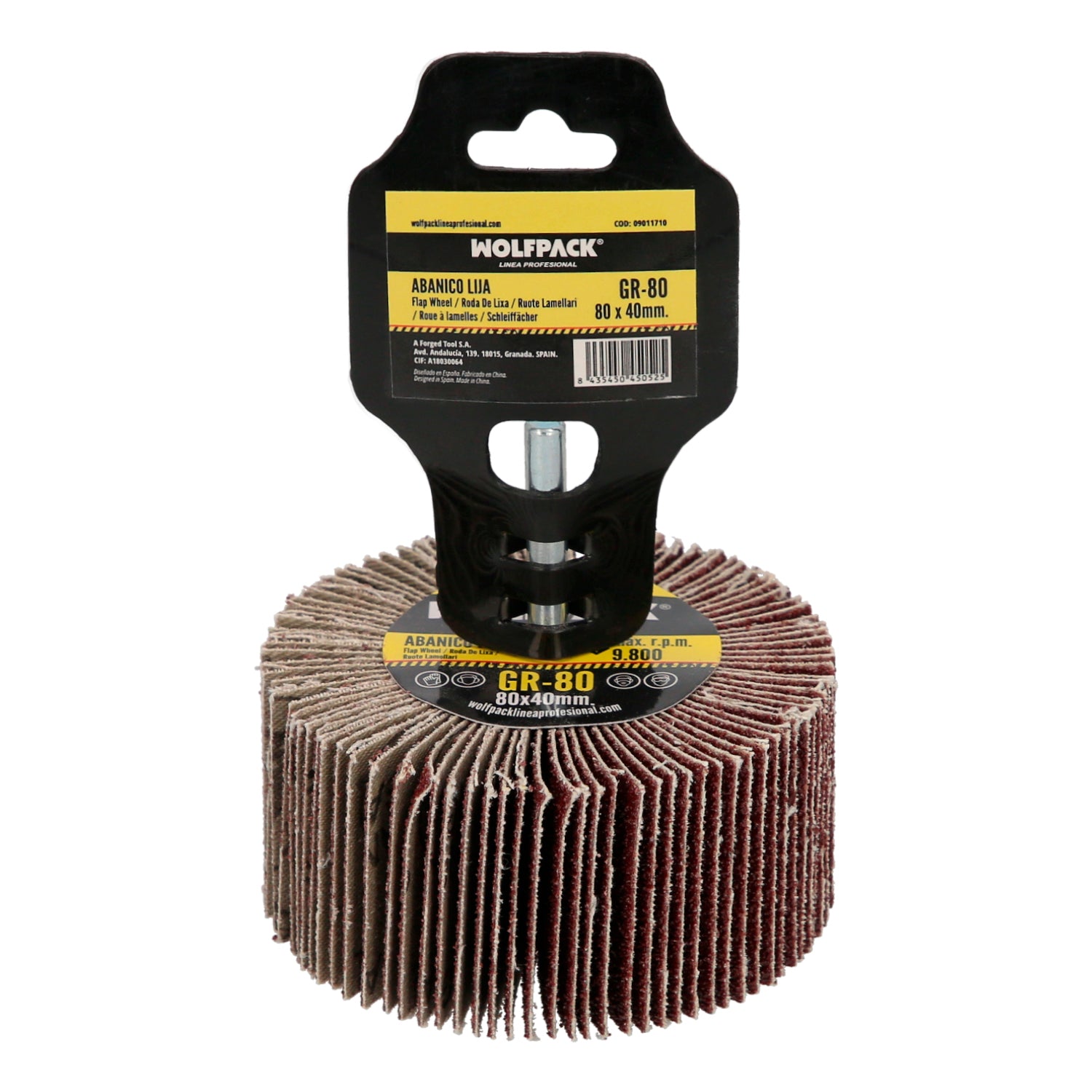 Lixa em leque, grão 80, Ø 80 x 40 mm. Disco abrasivo, rodas de lixa, rodas abrasivas, lixamento, esmerilhamento, polimento