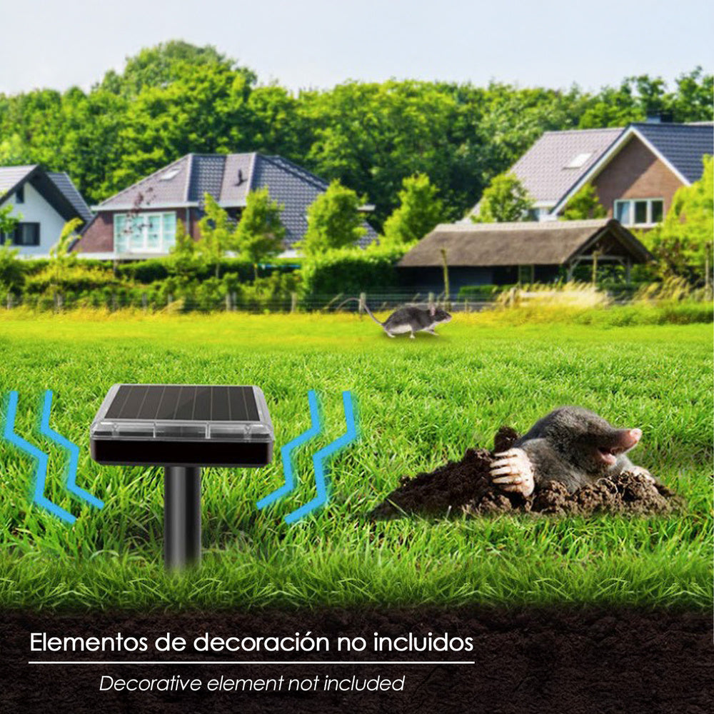 Ahuyentador Ultrasonidos Topos/Ratones 3 Piezas. Producto de uso profesional diseñado para trabajos de instalación, mantenimiento y reparación. Ahuyentador de Topos y Ratones con Tecnología de Ultrasonidos - Este efectivo ahuyentador cuenta con un diseño innovador que combina funcionalidad y eficacia. - Incluye 3 unidades de panel solar de 9x7 cm que se encargan de mantenerlo siempre activo y funcionando de manera autónoma. - Además, incorpora una batería recargable 1xAA Mi-Mh (800mAh) para ofrecer una mayor durabilidad y eficiencia en su uso. - Con un amplio radio de acción de 625m2, este ahuyentador es ideal para proteger espacios exteriores de hasta esa dimensión, manteniendo libres de topos y ratones tu jardín, huerto o cualquier área que desees proteger. - Su estructura en ABS garantiza una gran resistencia y durabilidad, mientras que su altura de 30,5 cm lo hace fácilmente visible y accesible en cualquier lugar donde decidas colocarlo.. Apto para entornos exigentes. Recomendado para profesionales, talleres e industria.