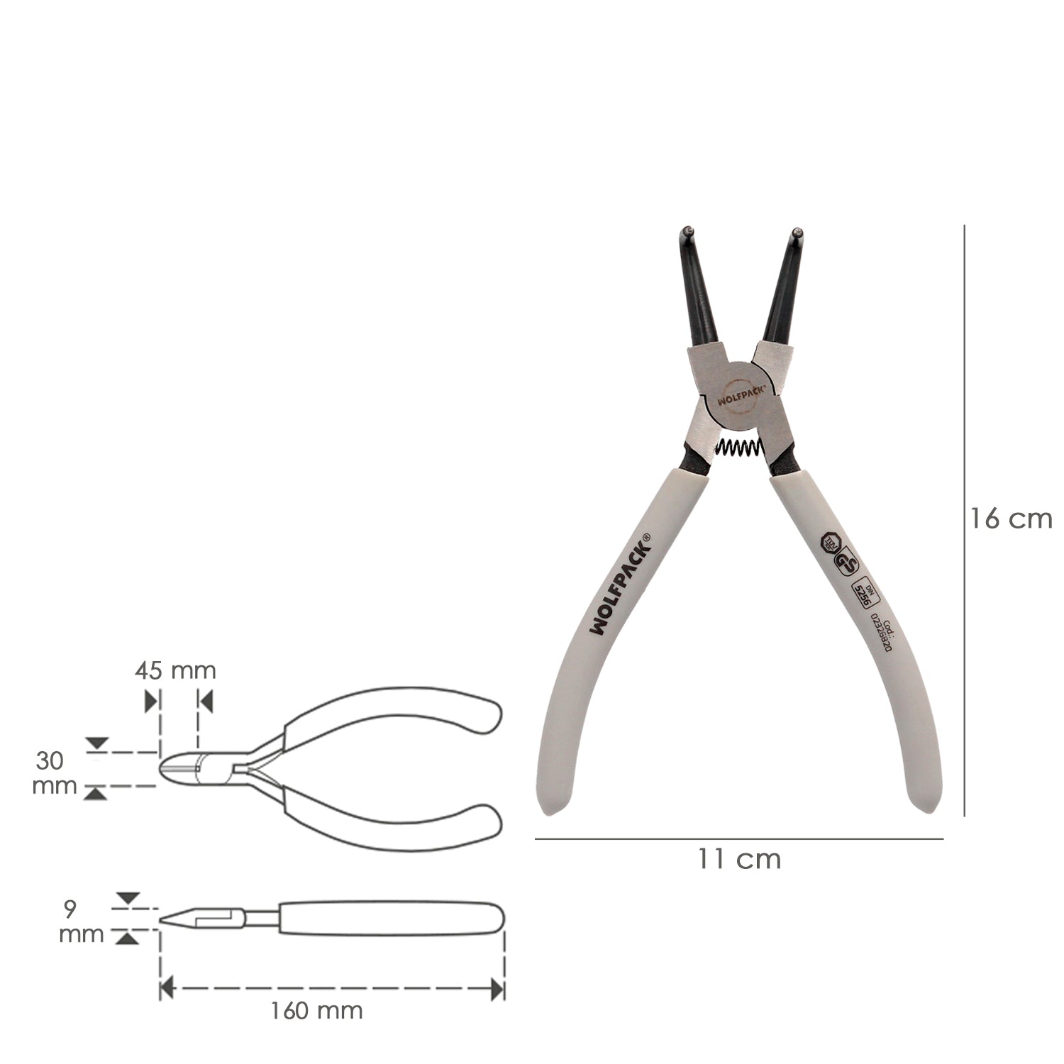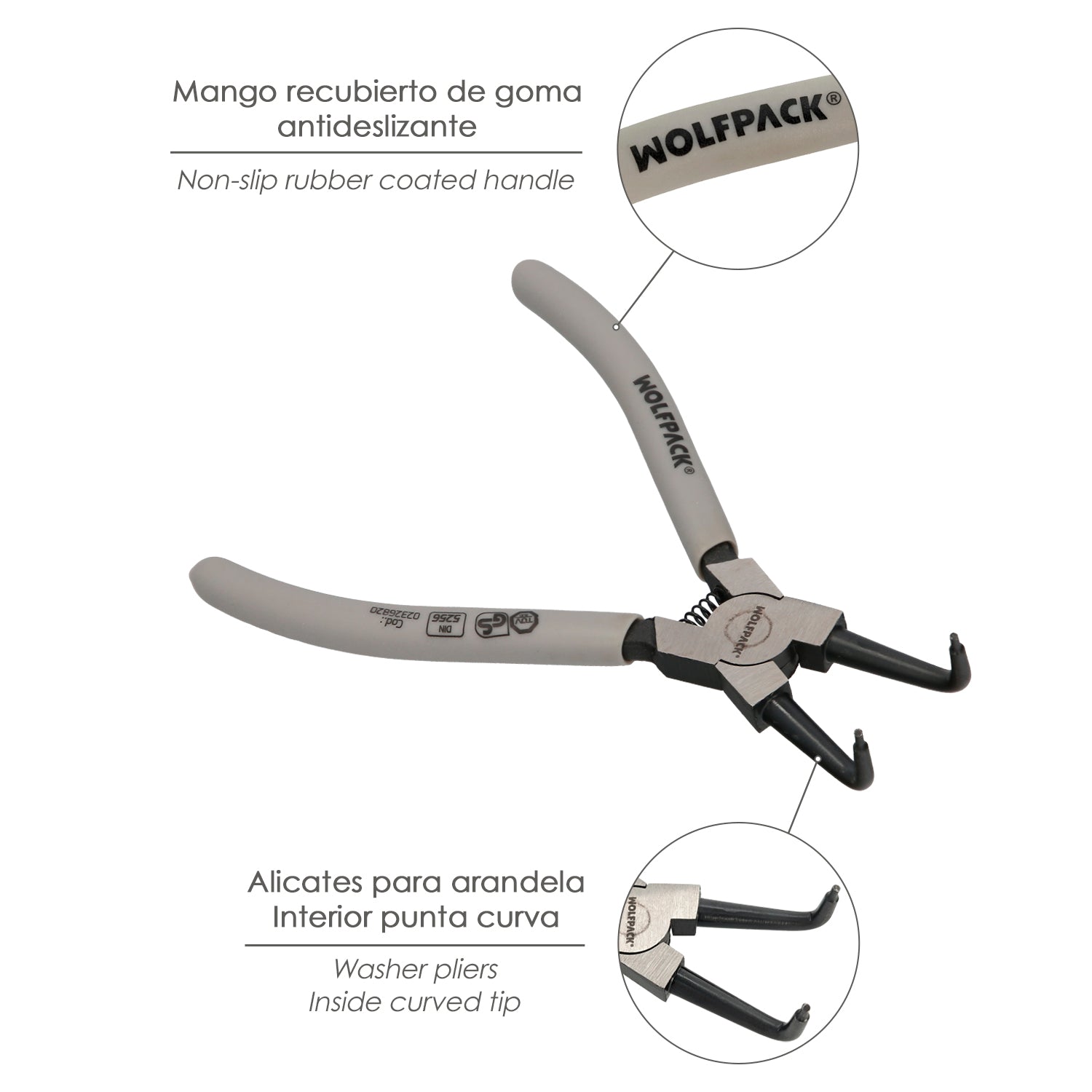 Alicate para anéis de retenção curvos, 175 mm. Aço DIN 5256. Anéis de retenção, anéis de retenção, anéis de retenção