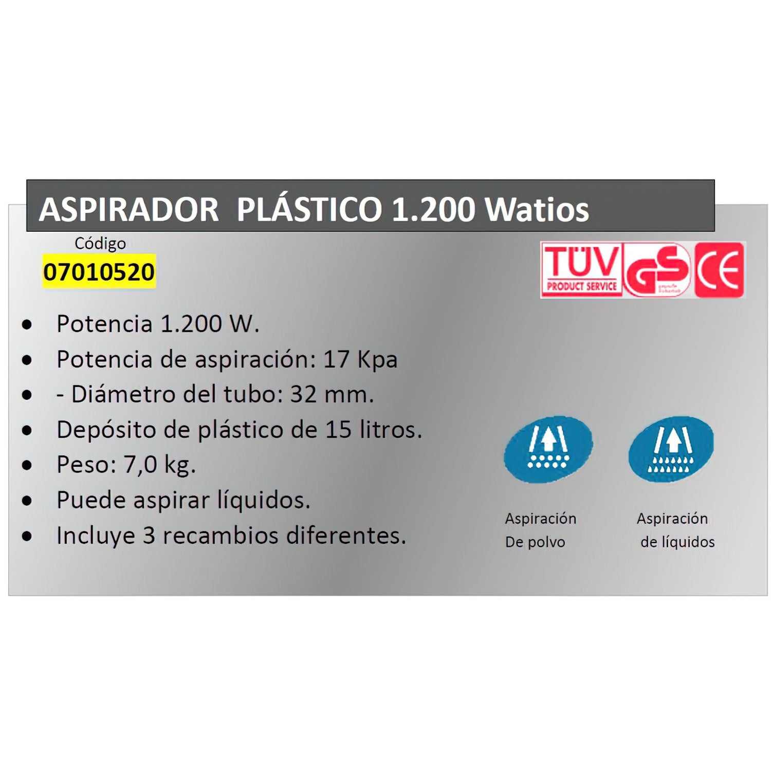 Aspirador de pó de plástico Yamato 15 litros / 1200 watts