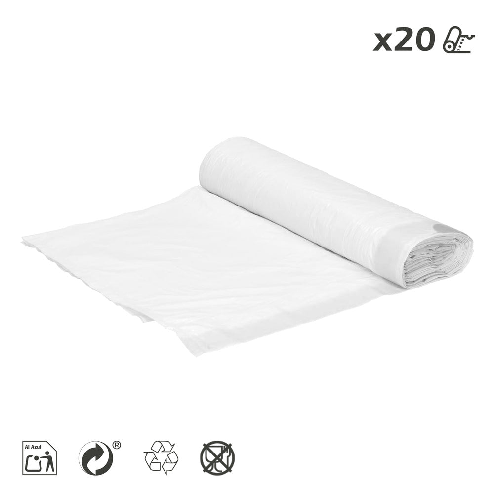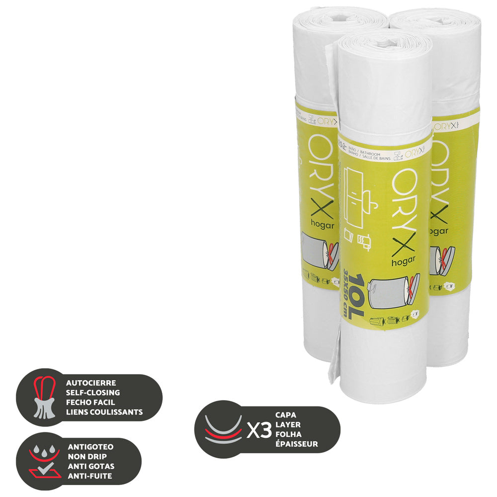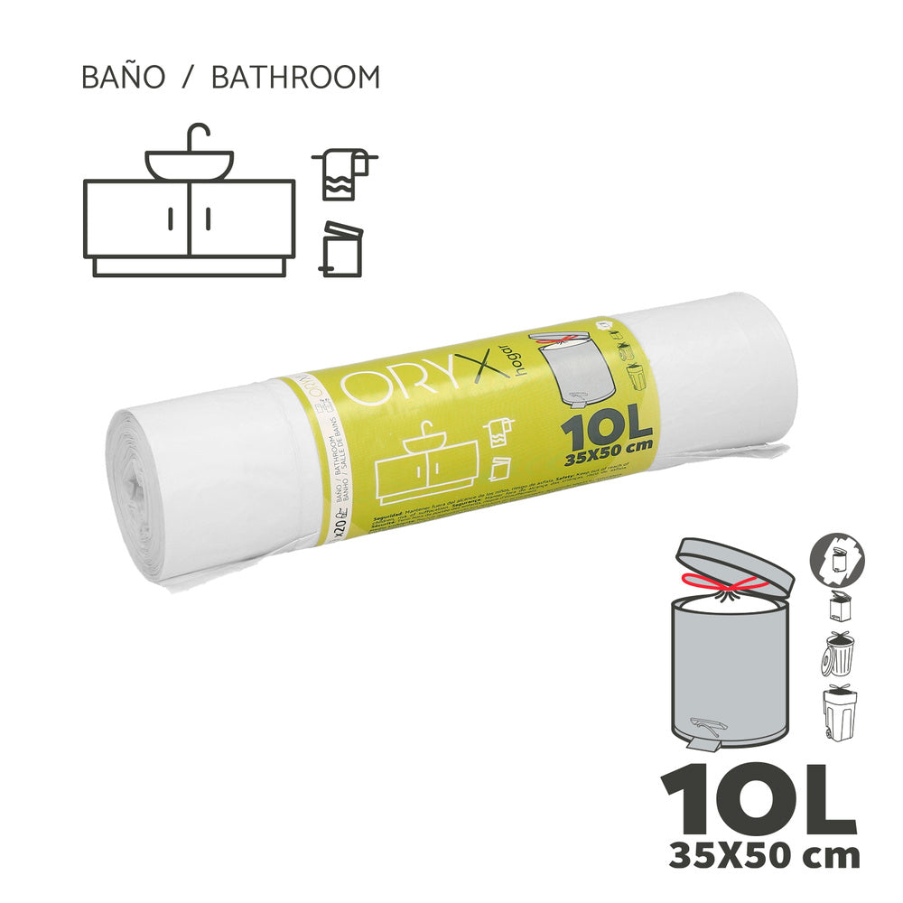 Sacos de lixo com fecho fácil, rolo de 20 unidades de 10 litros.
