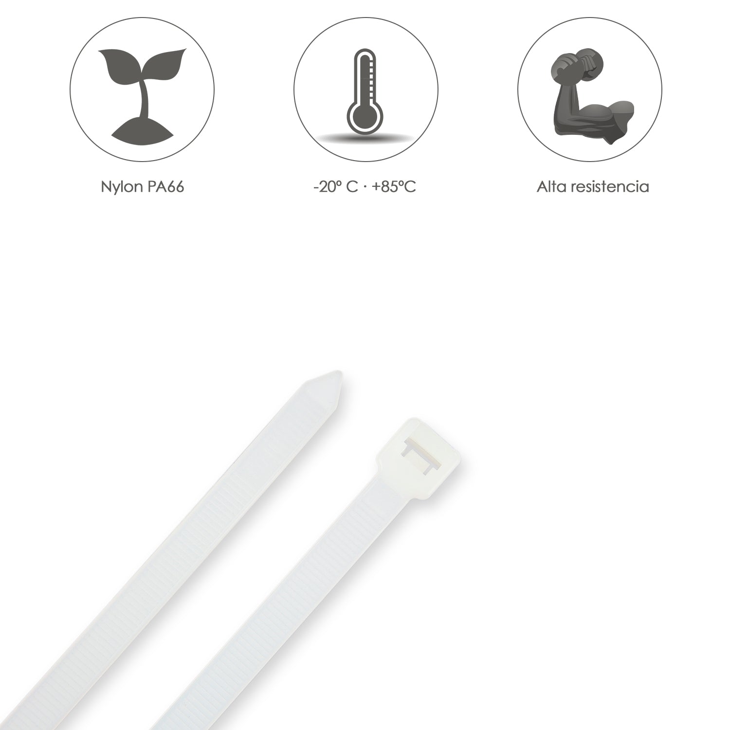 Abraçadeira 100% nylon. Branca/Natural. 4,5 x 280 mm. Pacote com 100 unidades. Abraçadeira de plástico, organizadora de cabos, alta resistência.