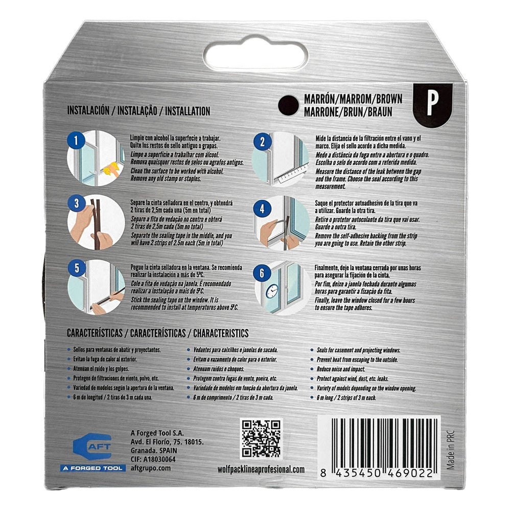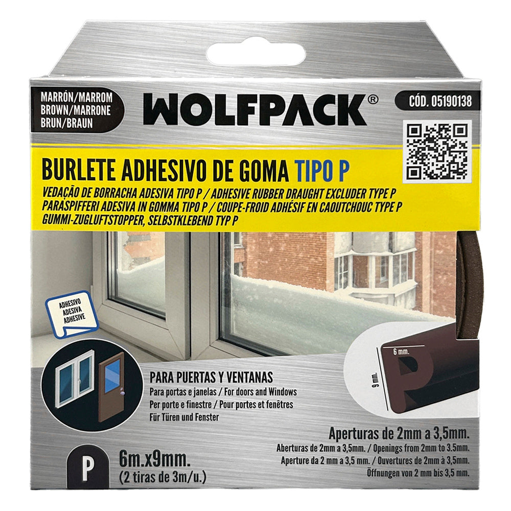 Exclusor de correntes de ar elástico "P" 6 m x 9 mm. Marrom
