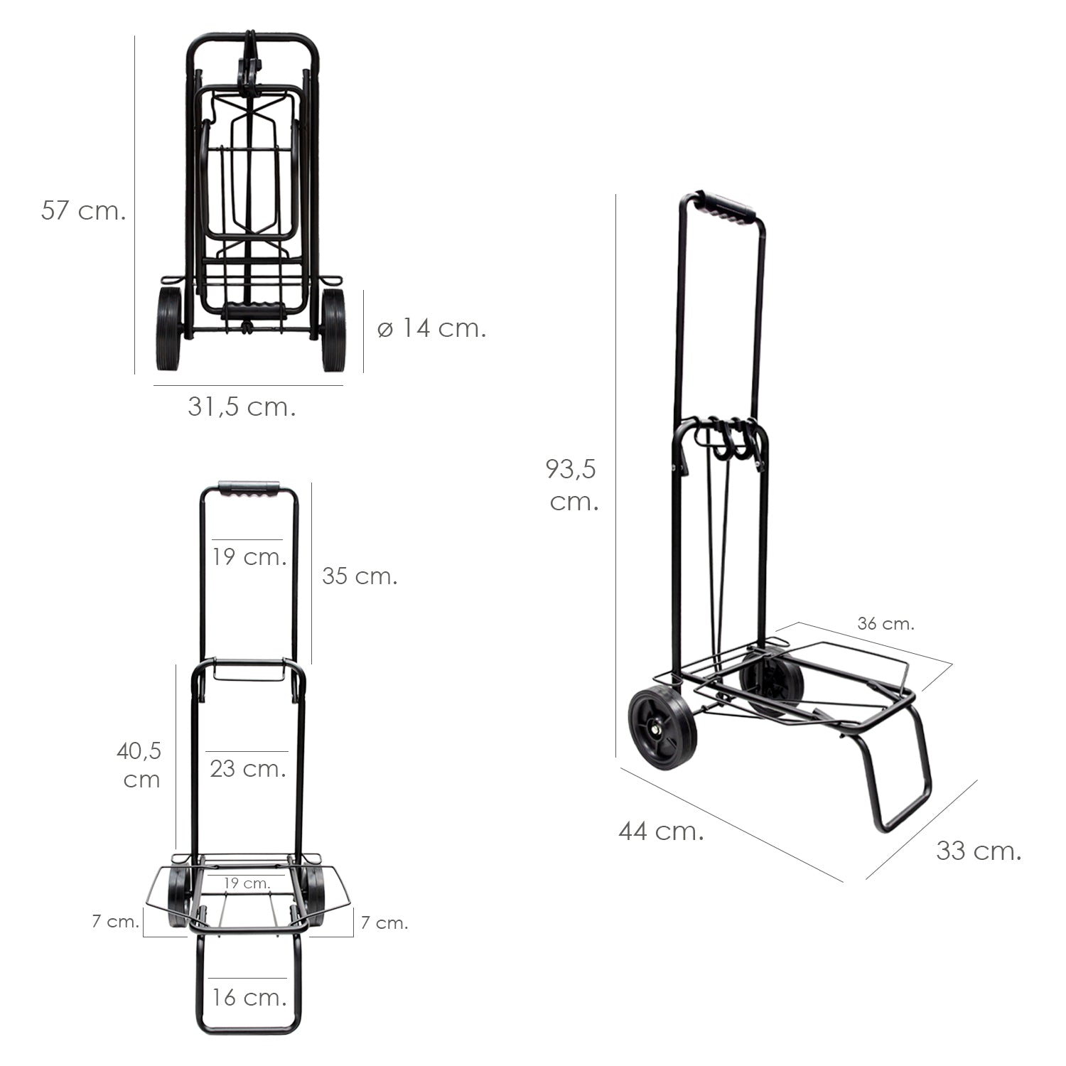 Carrinho de carga dobrável de metal - Suporte para bagagem com cordão elástico, 93,5 x 33 x 44 cm. Carrinho de transporte, 50 kg.