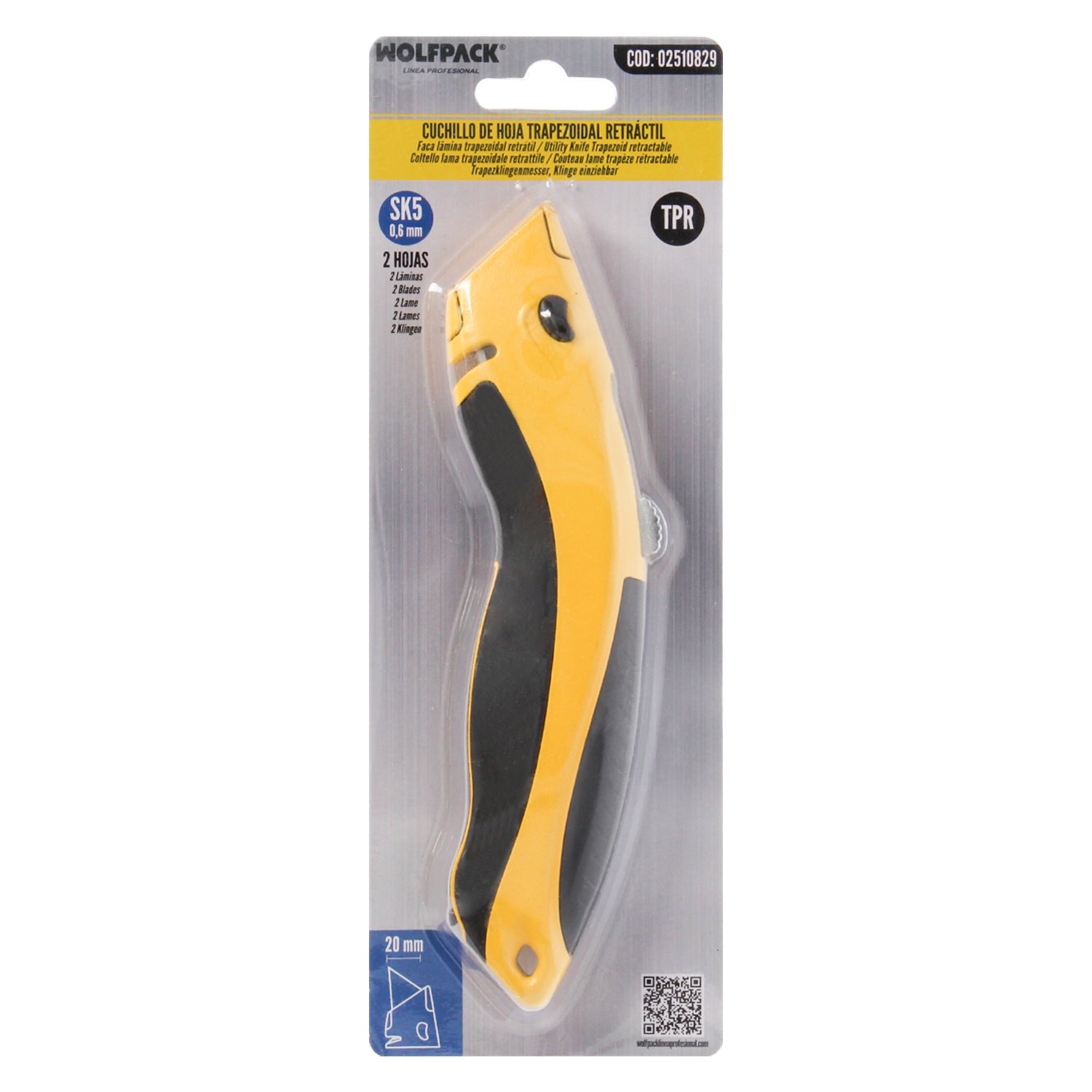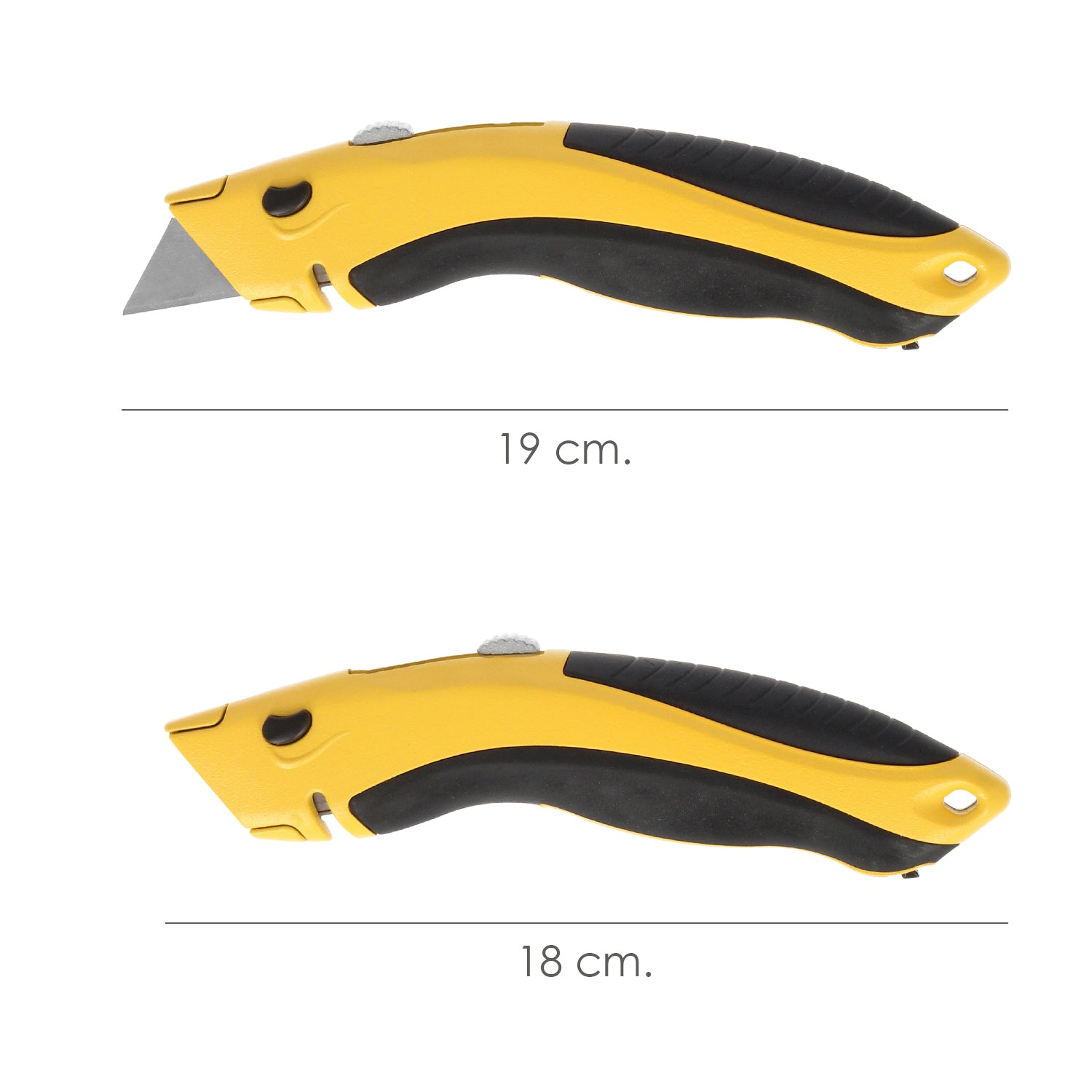 Canivete com lâmina retrátil de 20 mm. Lâmina de troca rápida. Corpo em alumínio. Cabo emborrachado. Uso profissional.