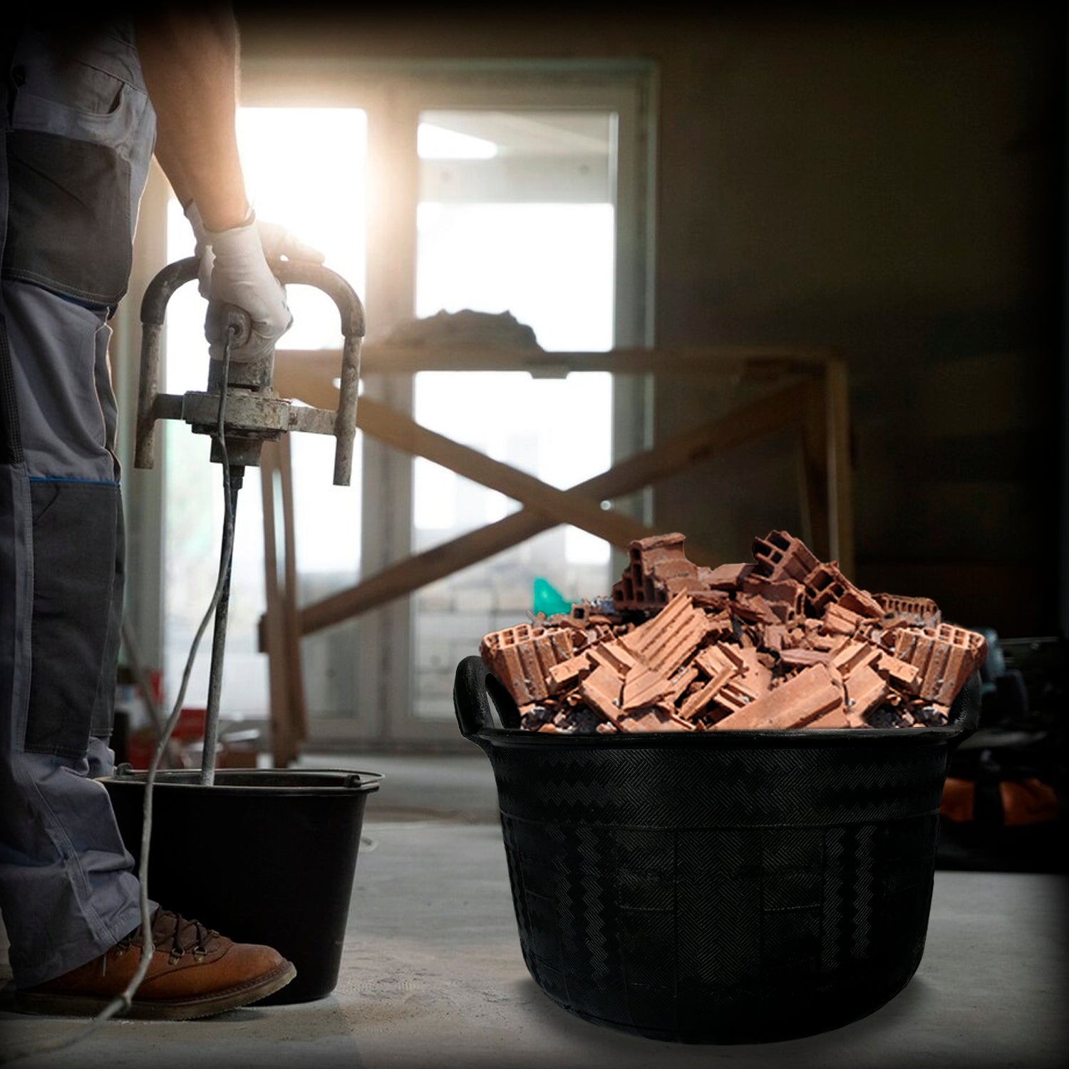 Cesto de Carvão de Borracha de 30 Litros com Base Reforçada e Alças Laterais. 1 cm de Espessura. Cesto de Construção, Balde de Borracha para Construção