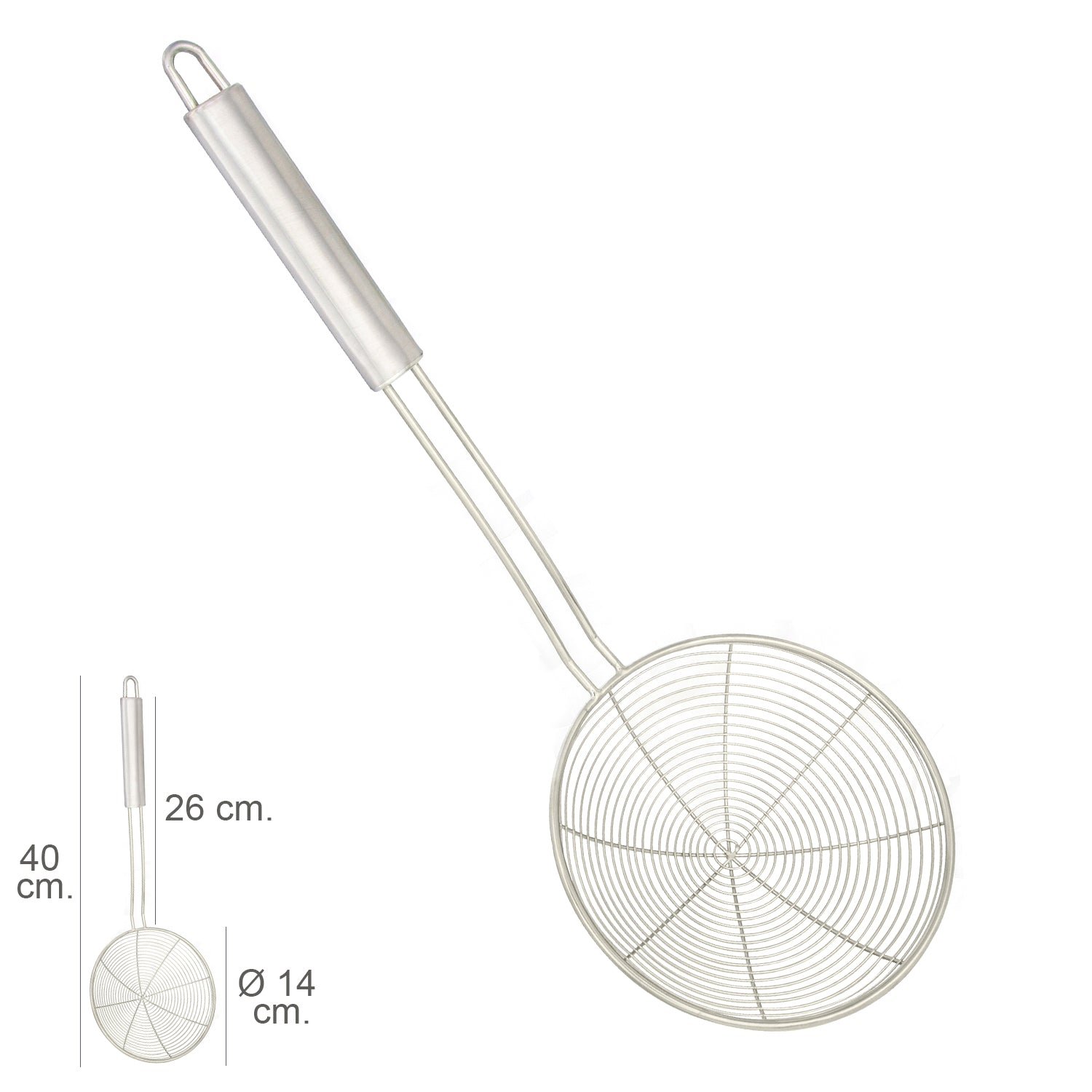 Escumadeira de aço inoxidável Ø 14 cm. Cabo redondo 26 cm.