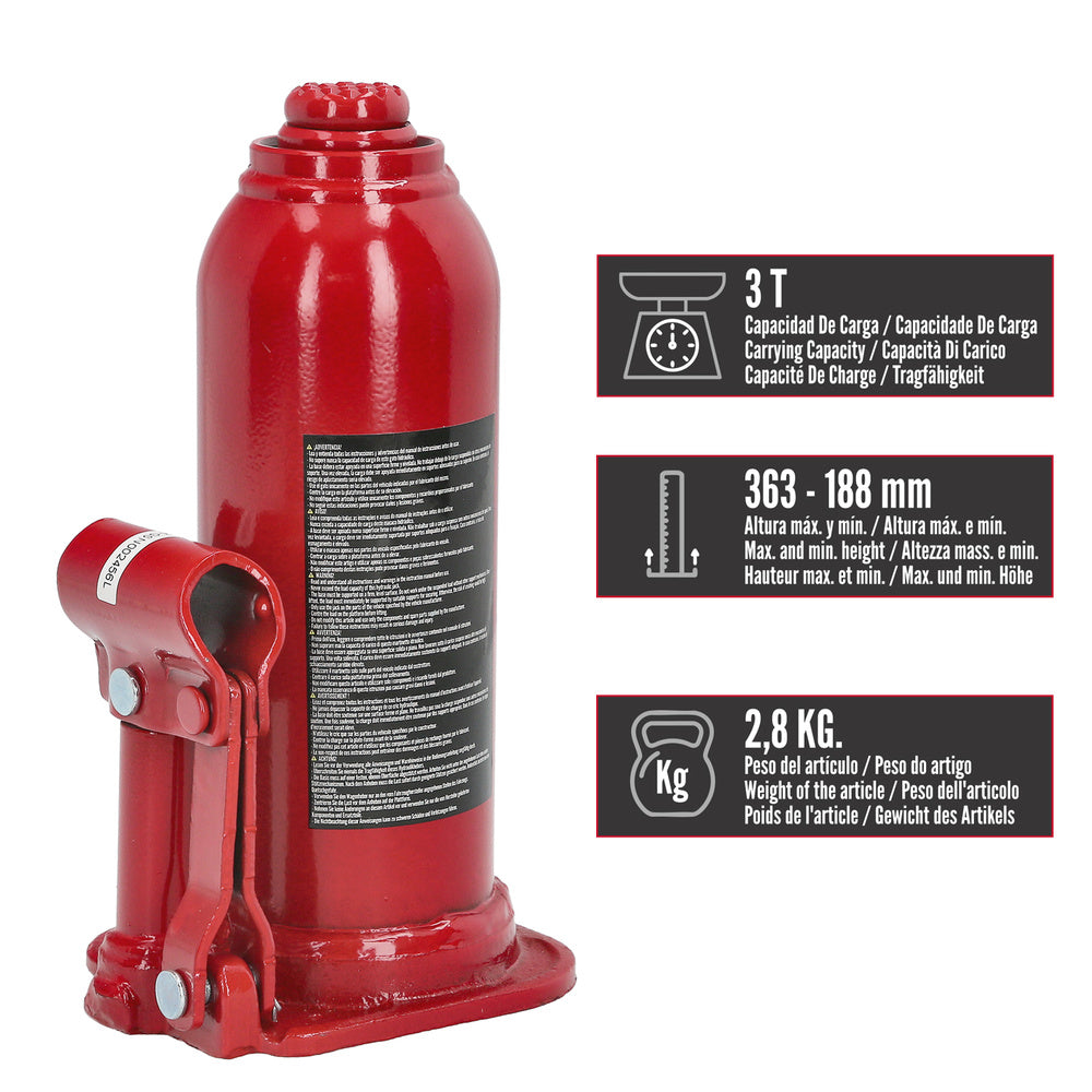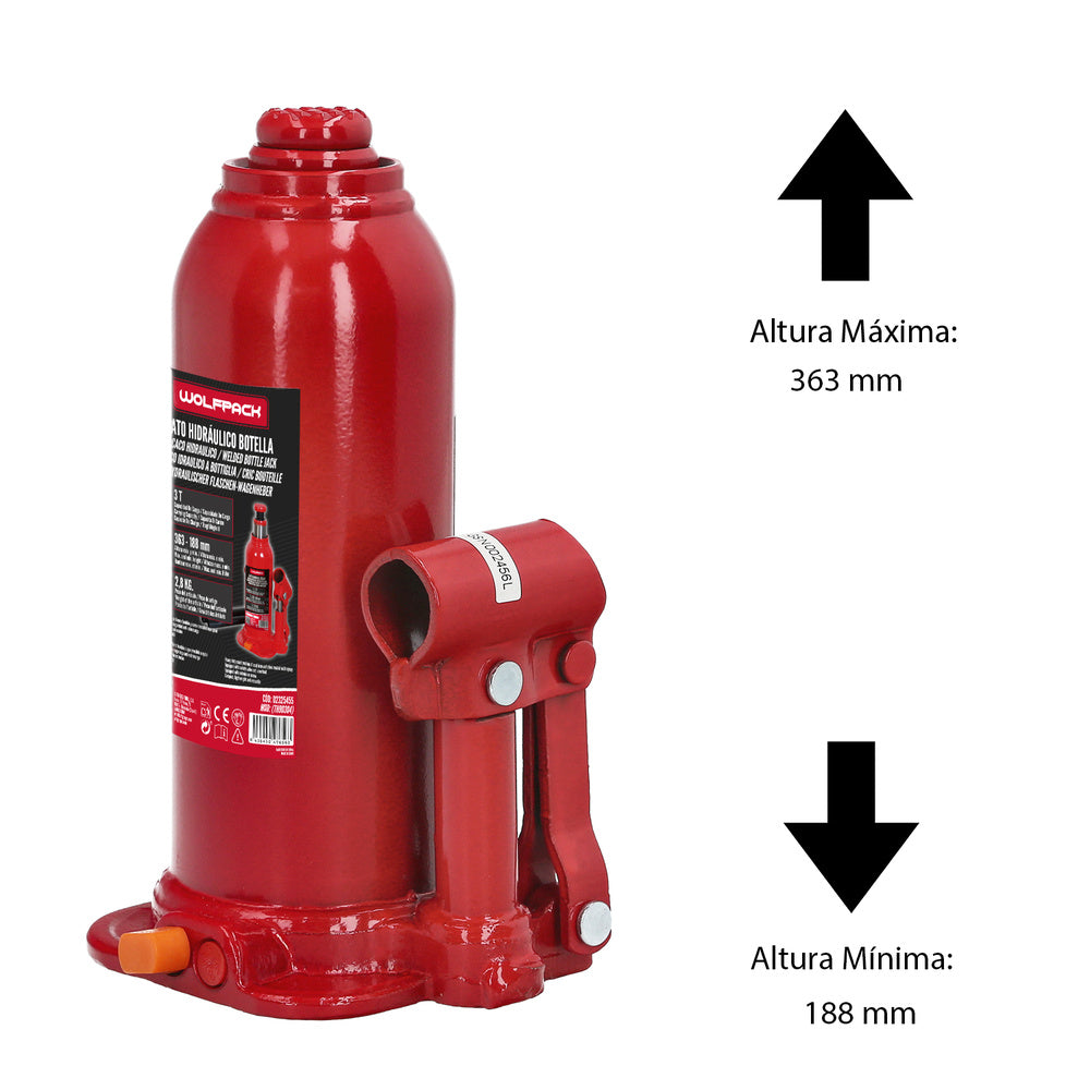 Macaco hidráulico tipo garrafa de 3000 kg.