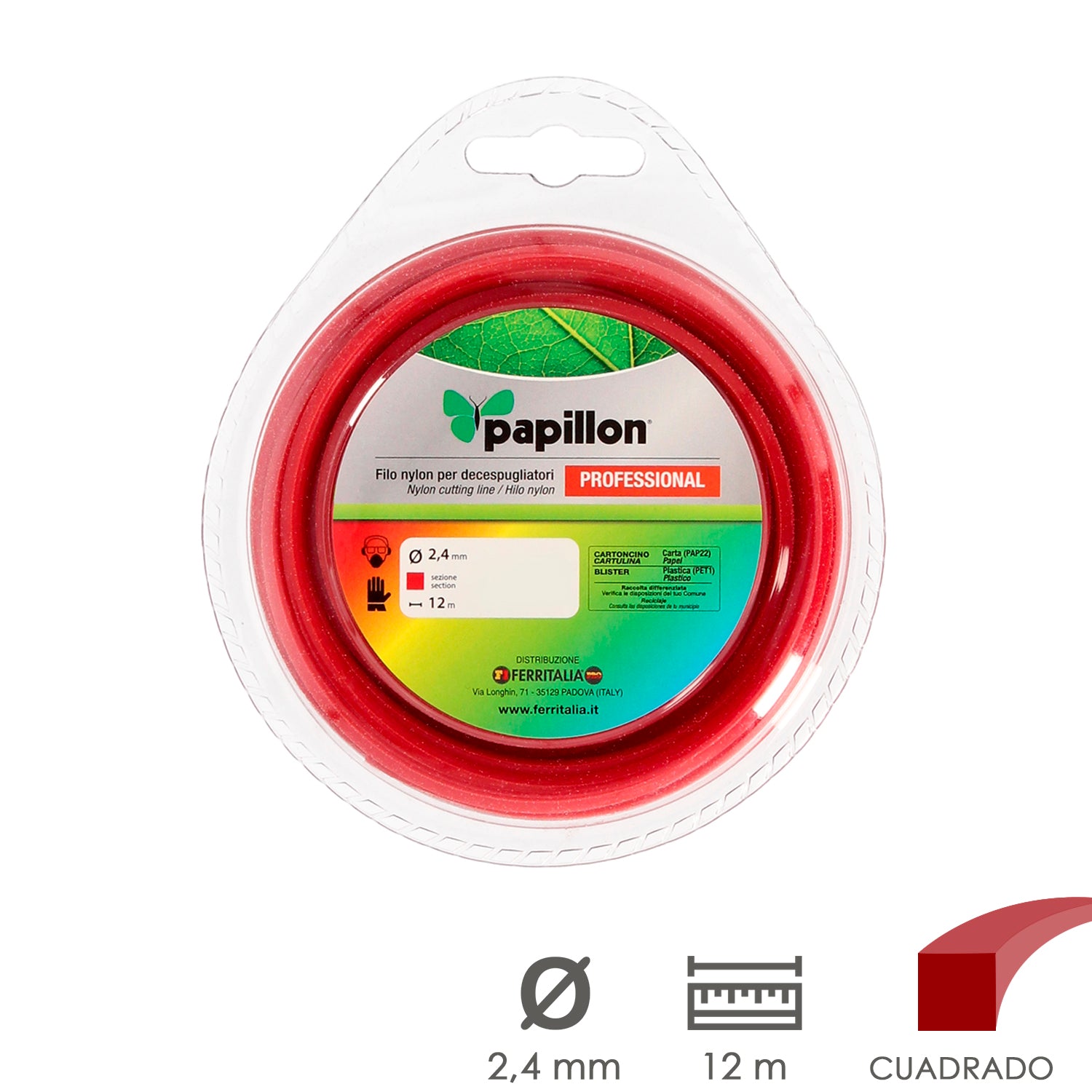 Fio de nylon quadrado profissional para roçadeira, Ø 2,4 mm. Rolo com 12 metros. Fio de nylon para cortar grama, jardim e roçadeiras.