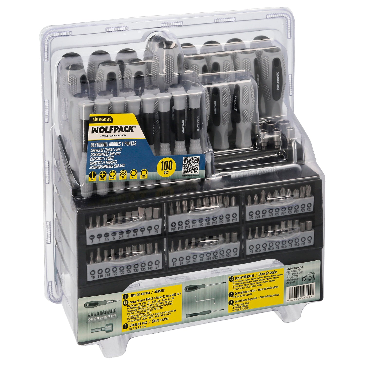 Conjunto de 100 chaves de fenda com suporte de exposição