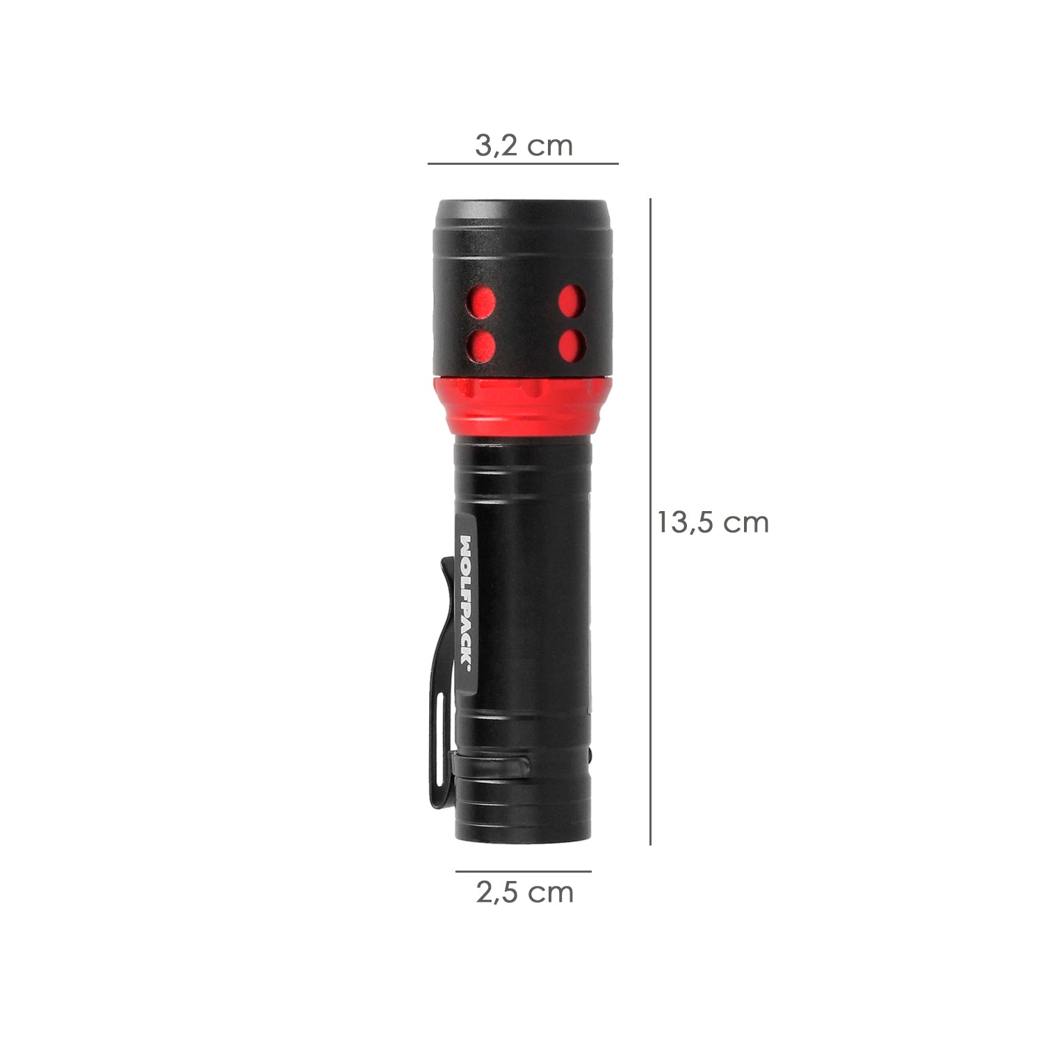 Mini lanterna LED portátil recarregável USB de alumínio (1.200 mAh), 500 lúmens, 5 watts, com função de zoom e clipe