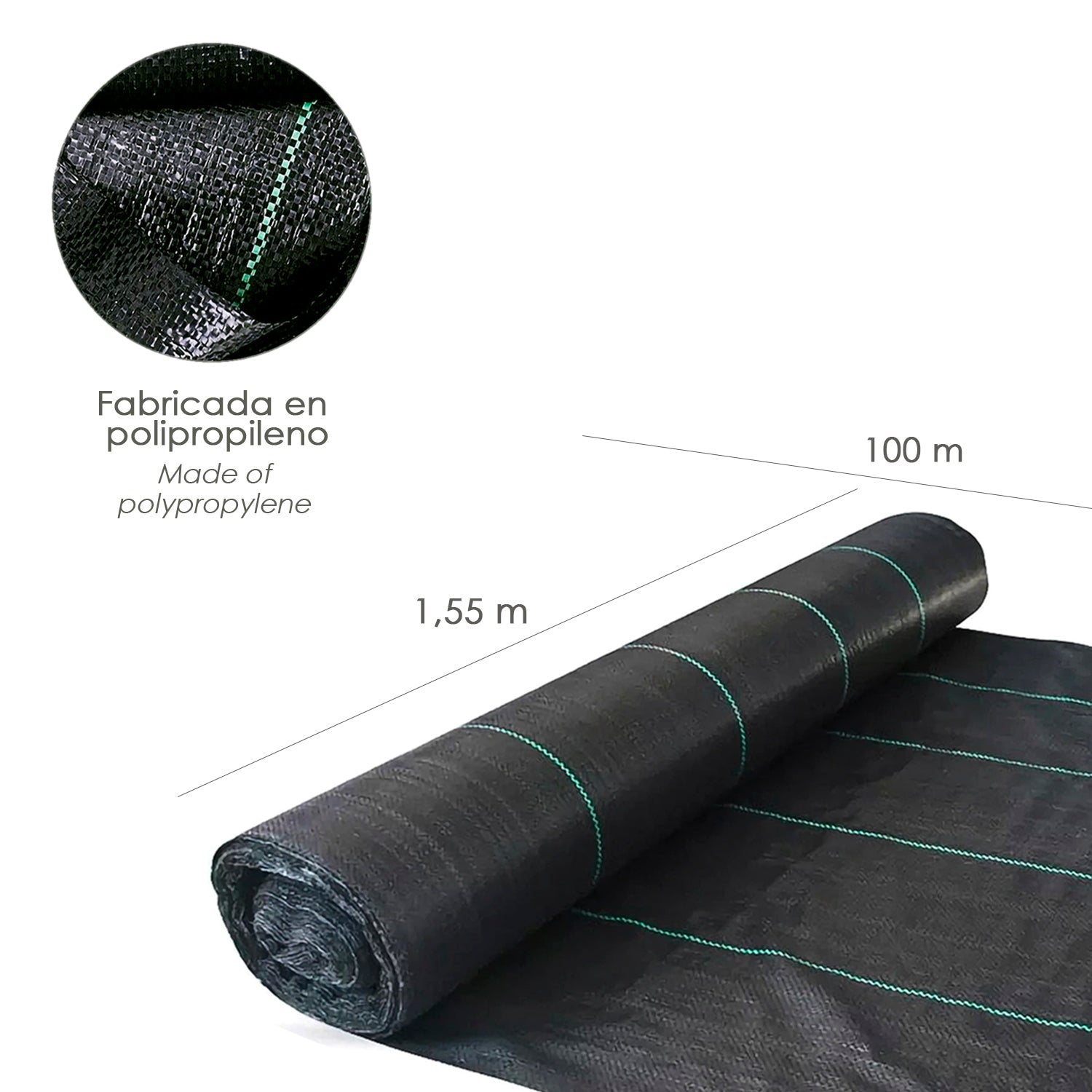Tela anti-ervas daninhas (rolo de 1,55 x 100 metros) Tela anti-ervas daninhas, Tela geotêxtil para jardim, Tecido anti-ervas daninhas para jardim