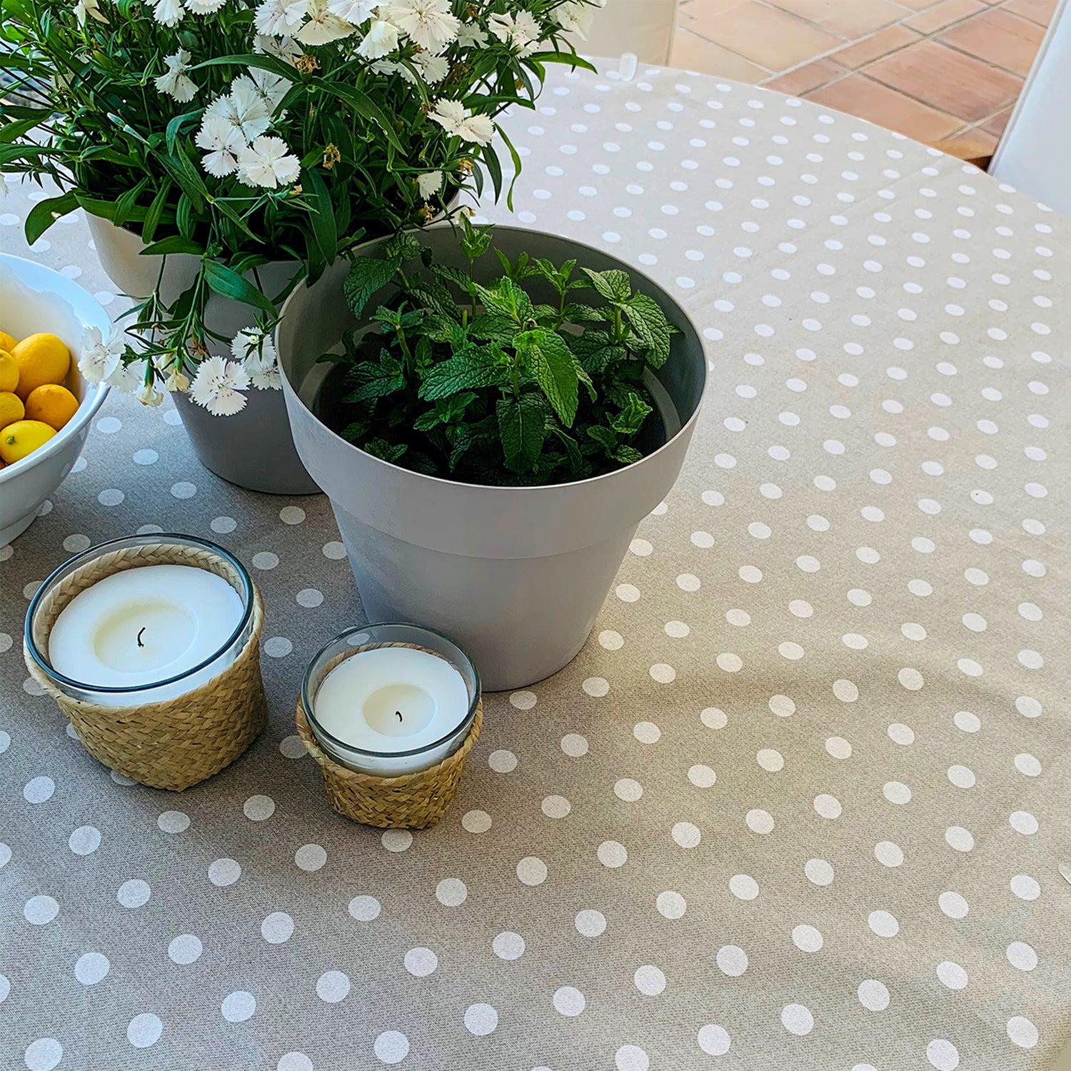 Rolo de toalha de mesa antimanchas Puntini Bege têxtil 1,4 x 25 metros