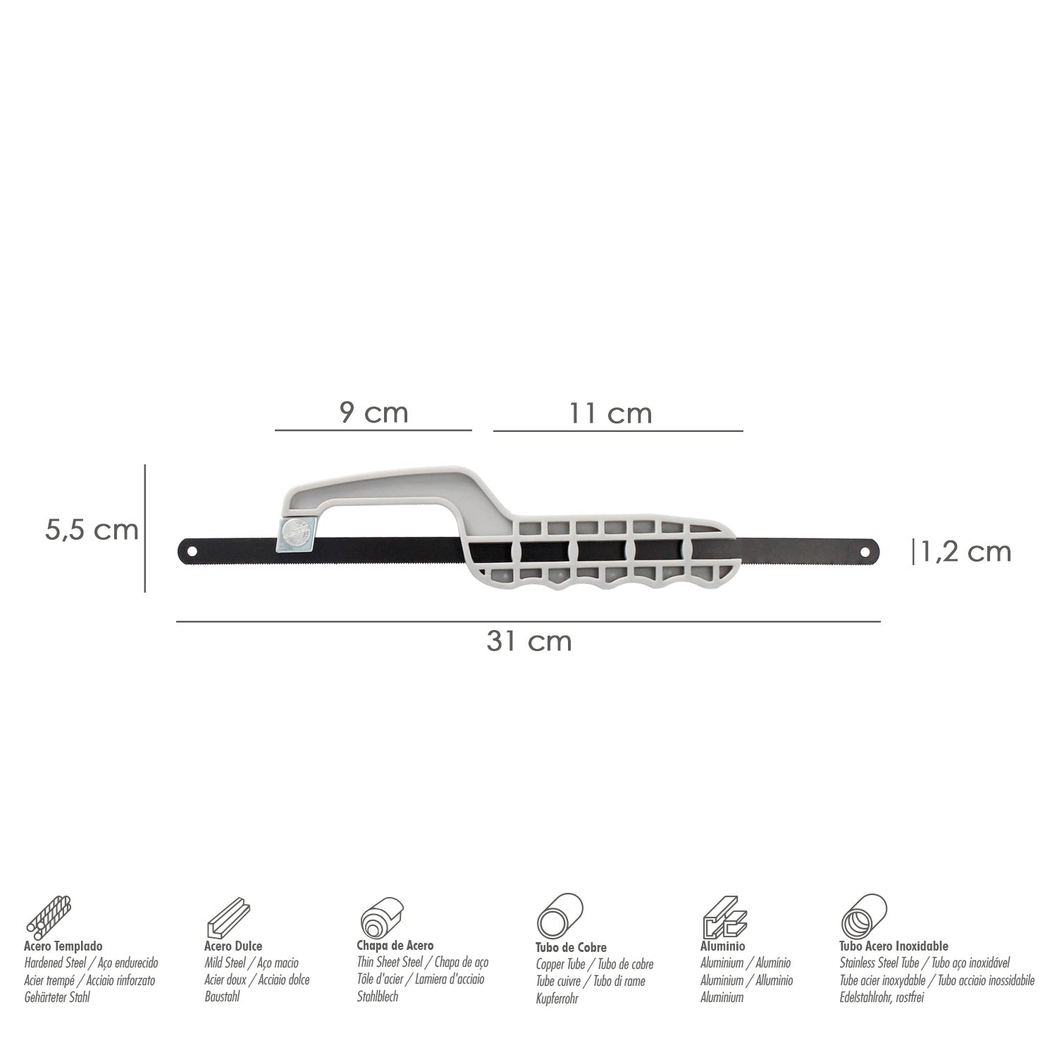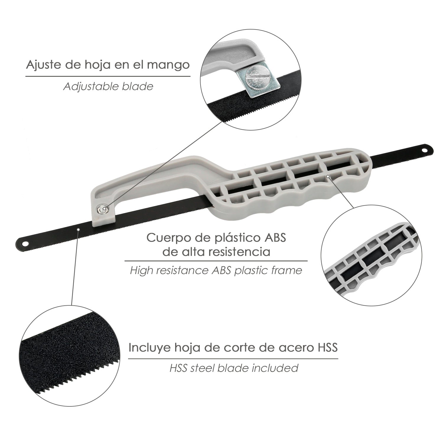 Mini serra com cabo de plástico e lâmina ajustável de 300 mm, lâmina de corte HSS, serrote, serra de arco, serra de arco, mini serra de arco