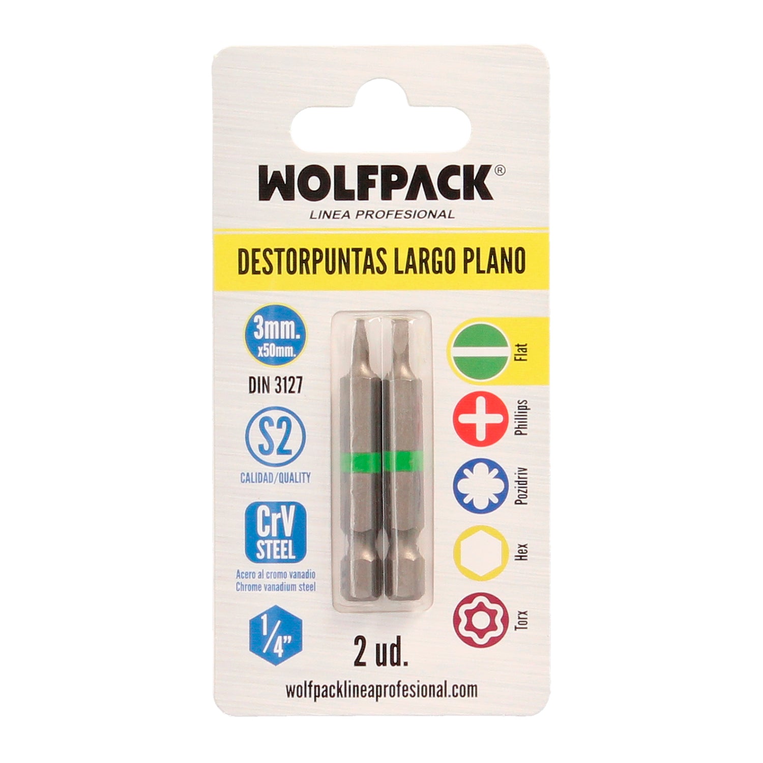 Pontas de chave de fenda de cabeça chata longa de 3 mm (2 peças). Aço cromo vanádio S2. Pontas sextavadas, pontas de chave de fenda,