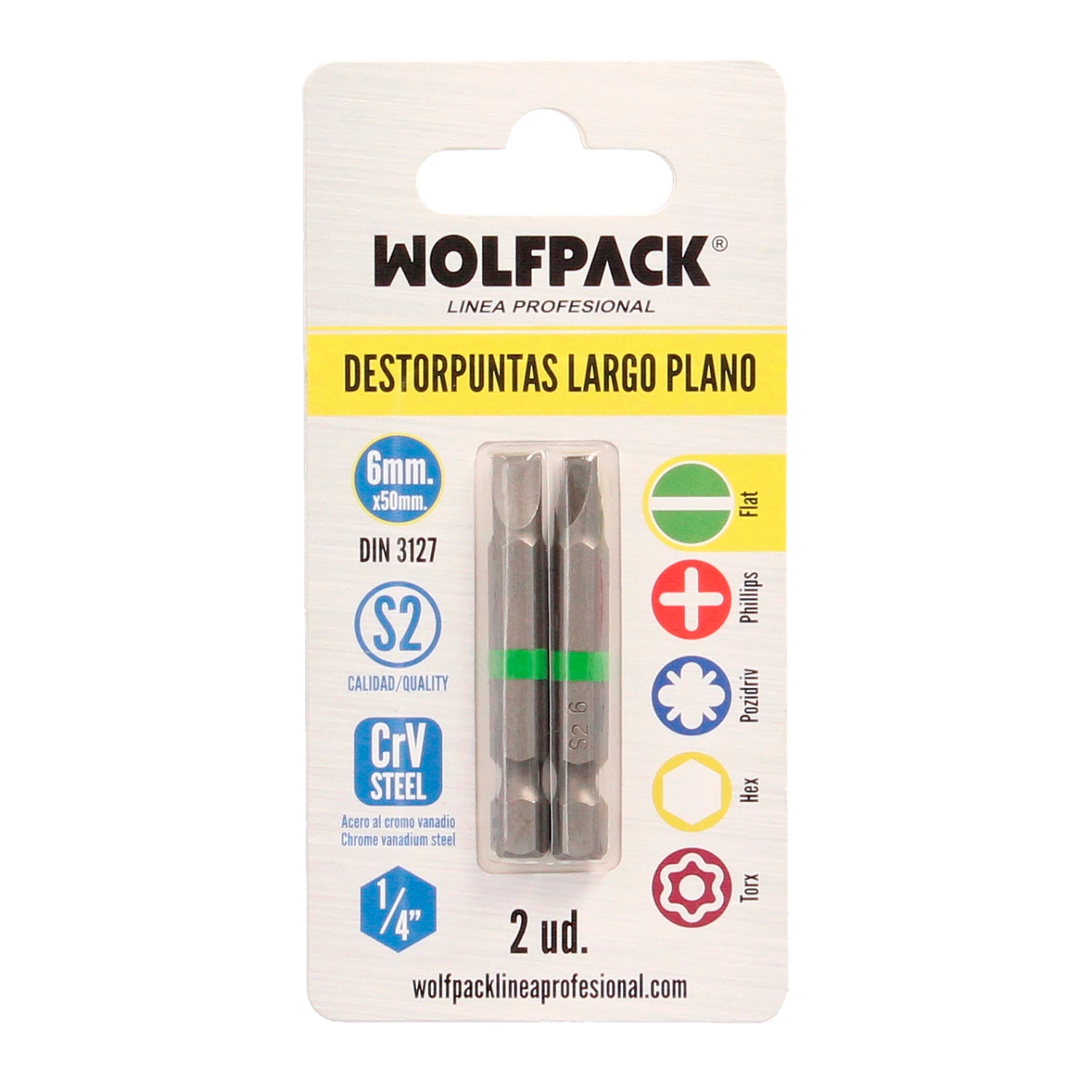 Pontas de chave de fenda de cabeça chata longa de 6 mm (2 peças). Aço cromo vanádio S2. Pontas sextavadas, pontas de chave de fenda,