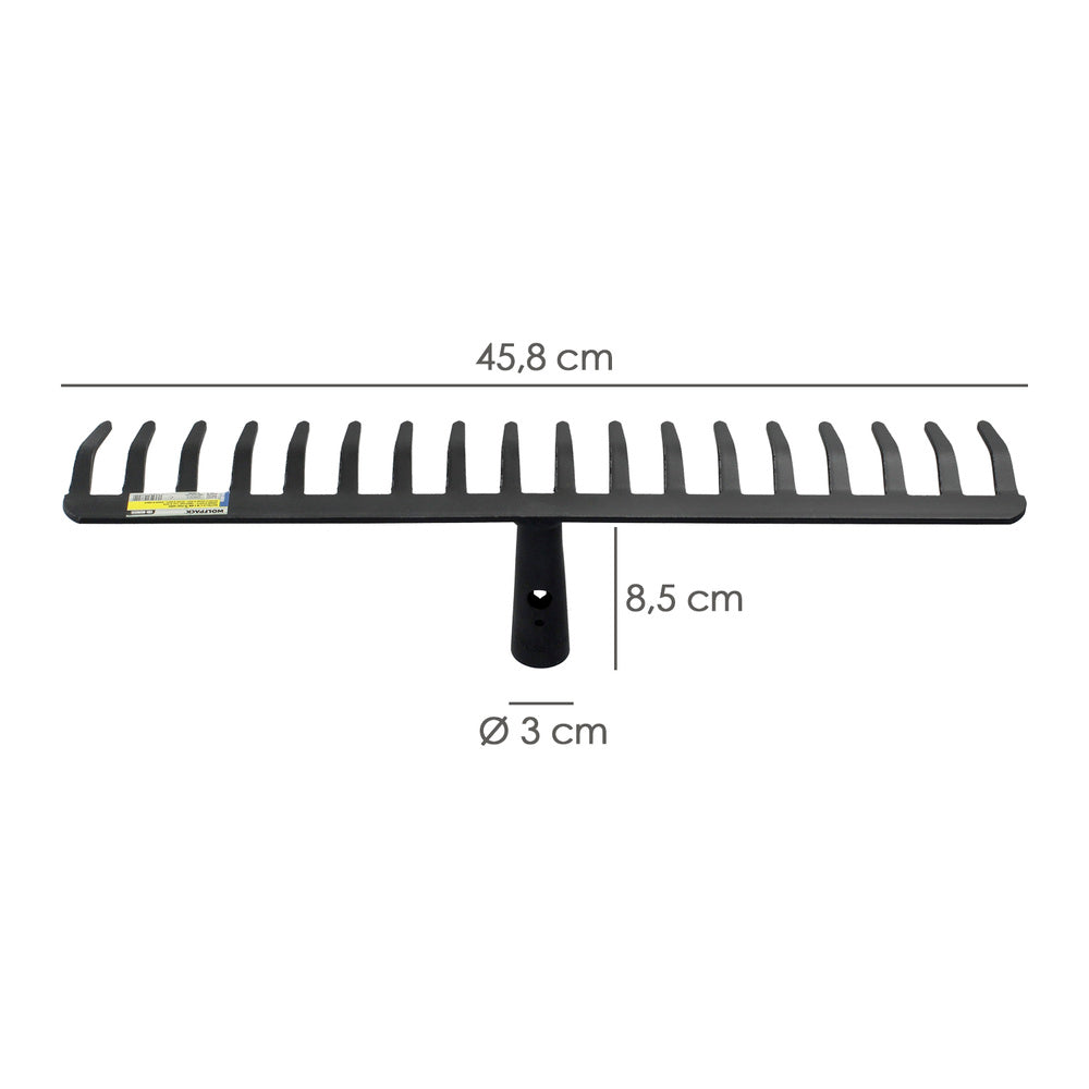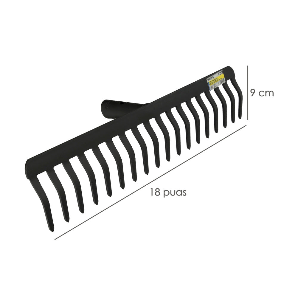 Ancinho sem cabo, com 18 dentes de 5 mm. Para uso agrícola.
