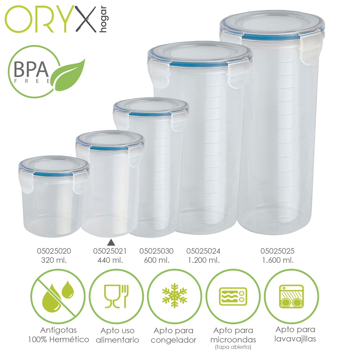 Recipiente plástico redondo hermético 440 ml. Ø 9,5x12,5 (A) cm.