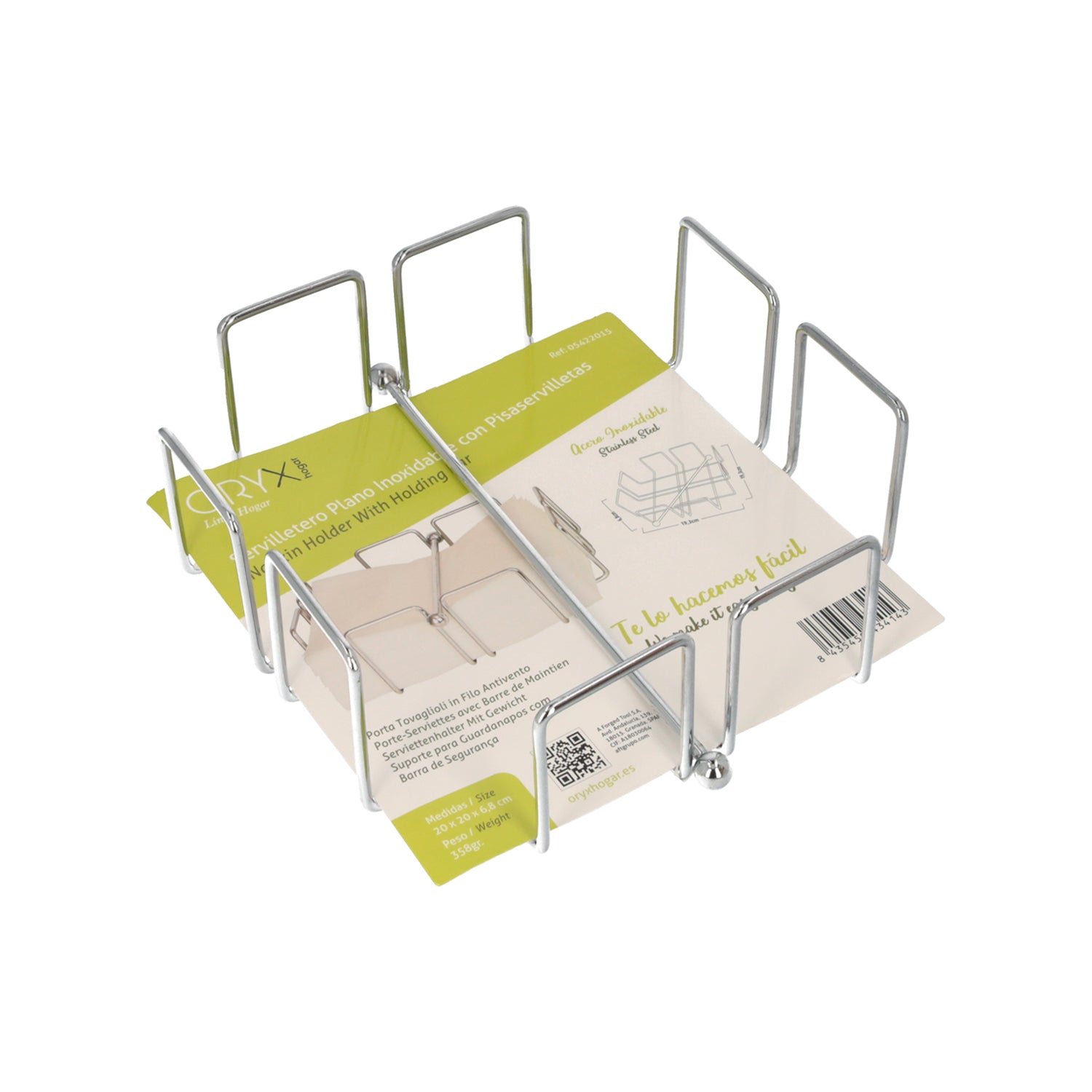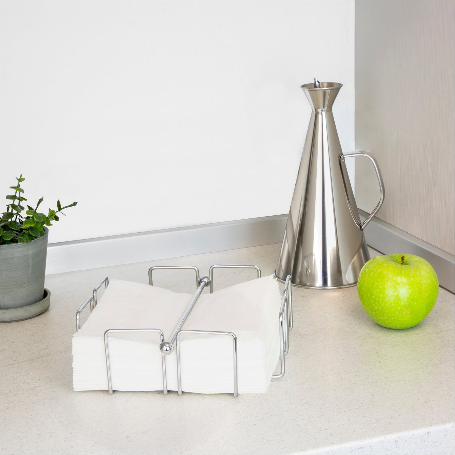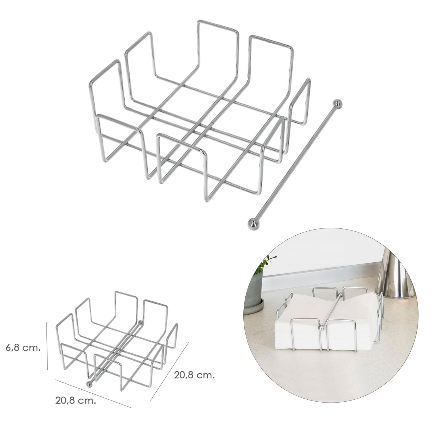 Porta-guardanapos de mesa, aço cromado, formato quadrado horizontal