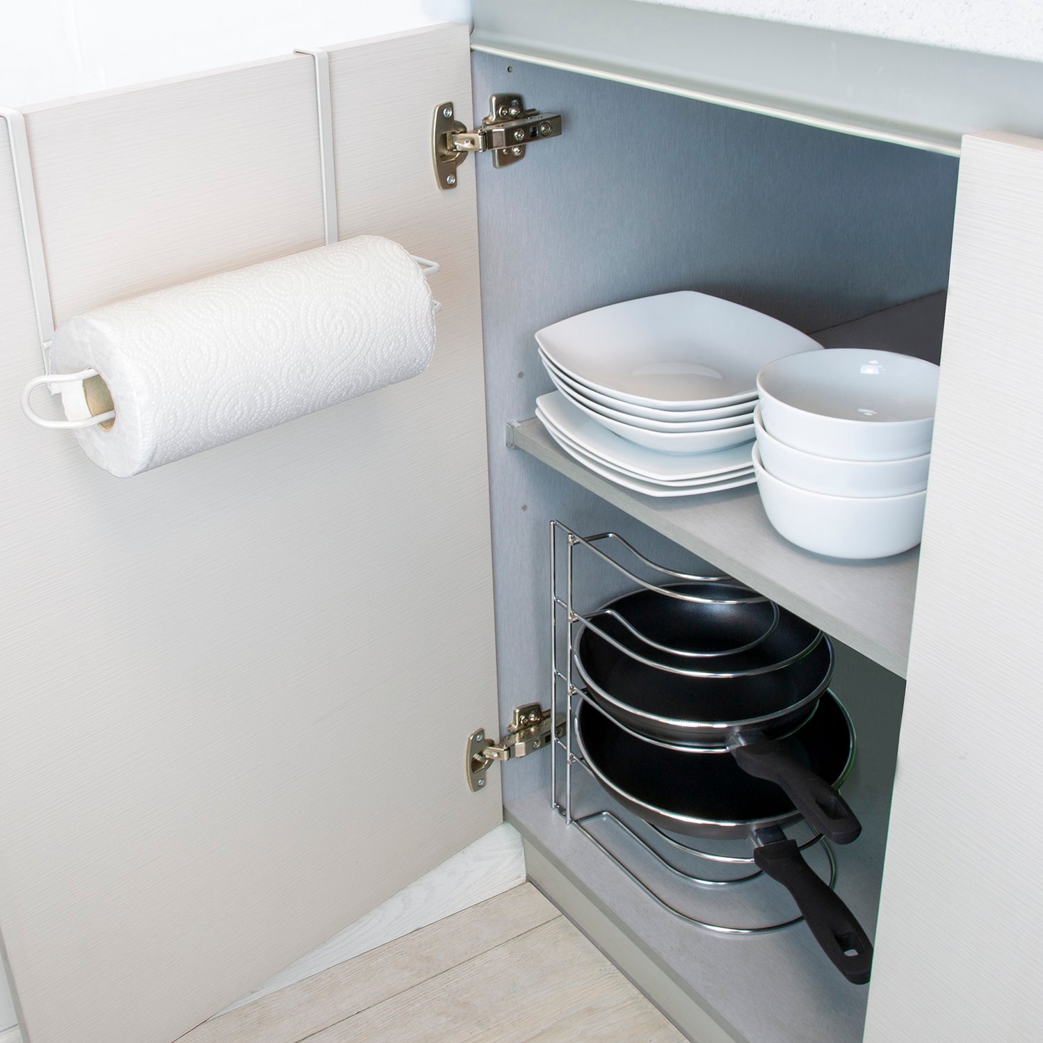 Suporte vertical de 5 níveis para panelas e tampas, aço cromado