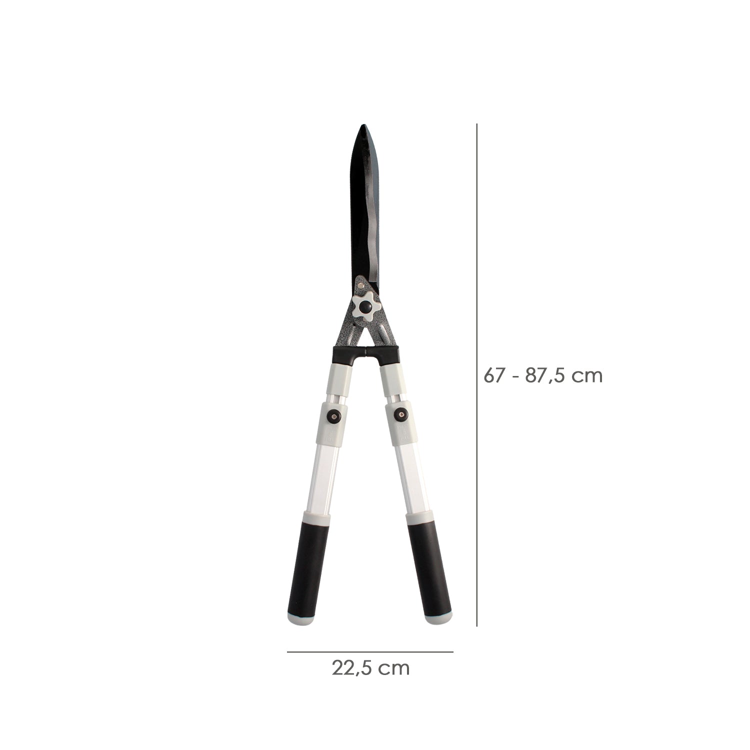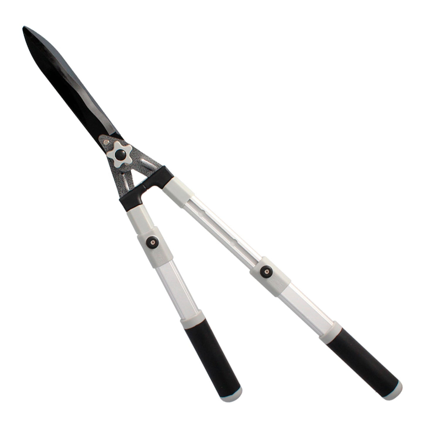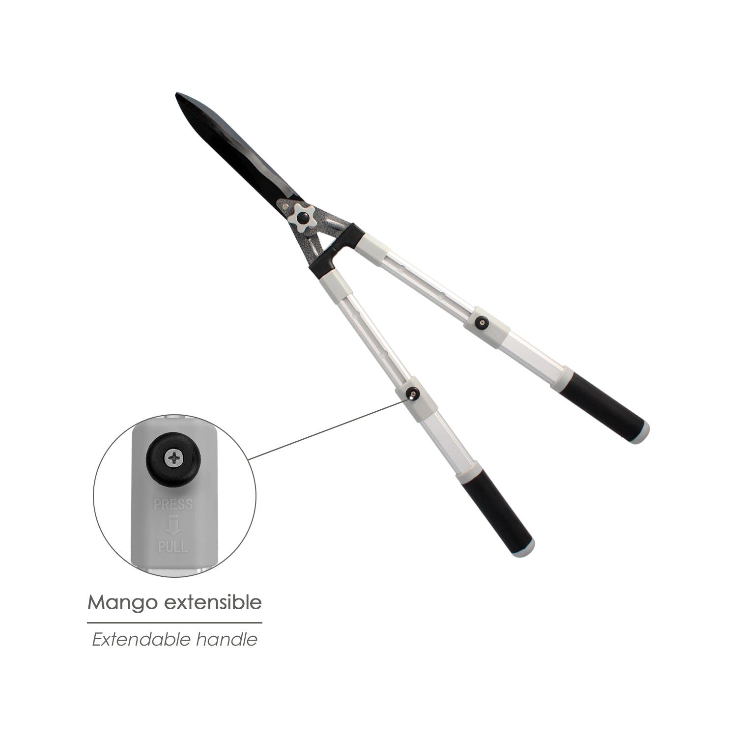 Tesoura de poda telescópica de alumínio de 2 mãos, lâminas de aço antiaderentes, cabo de TPR, ajuste de corte,