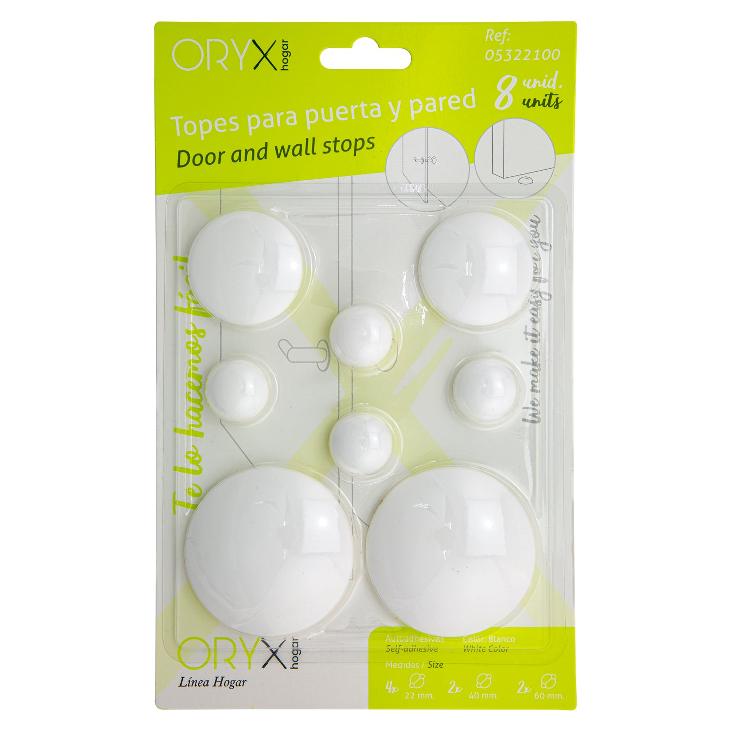 Batentes adesivos para paredes / portas / janelas / móveis 2 x Ø 60 mm. / 2 x 40 mm. / 4 x 22 mm. (Blister com 8 peças)